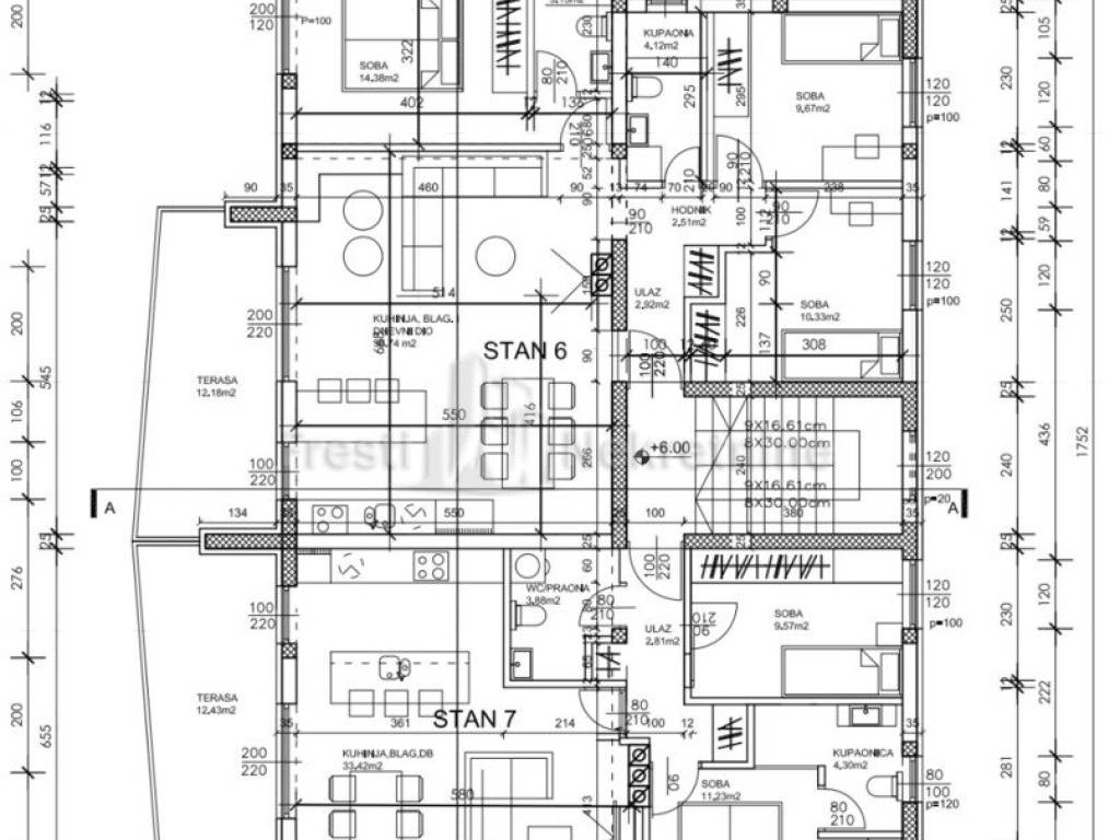 *Stanovima u prizemlju pridružen je vrt dok stanovi s prvog i s drugog kata osim GPM i ostave imaju pripadajuću i etažiranu krovnu terasu.