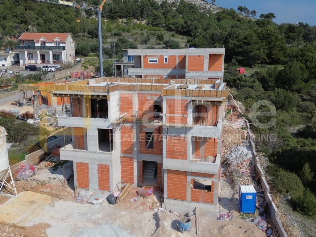 Apartment A1 is located on the ground floor of a modern newly built building in the Žaborić settlement, not far from Šibenik. The total area of the apartment is 52.17 m2, and it consists of a living room with a kitchen and dining area, one bedroom, a bathroom, and a terrace. The apartment also includes its own parking space, which further contributes to the practicality and comfort of living.