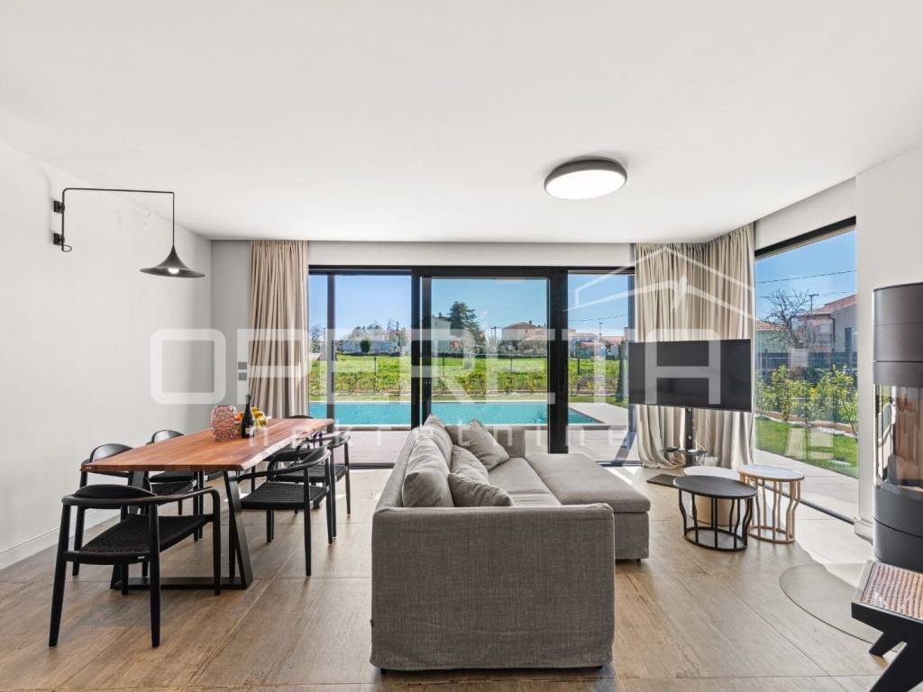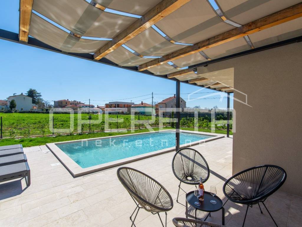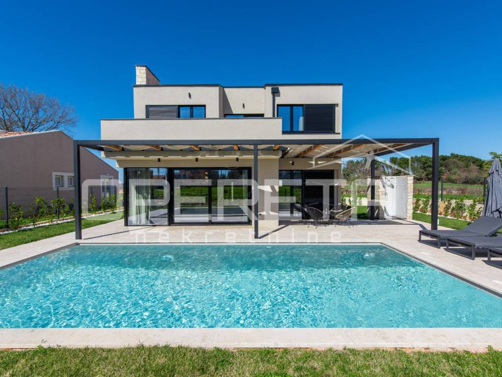 Predivna mediteranska villa izgrađena 2024, nalazi se u šarmantnom istarskom mjestu Krnica, samo 2,5 km udaljena od prvih plaža.