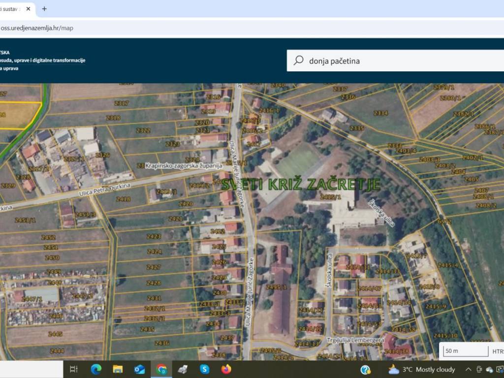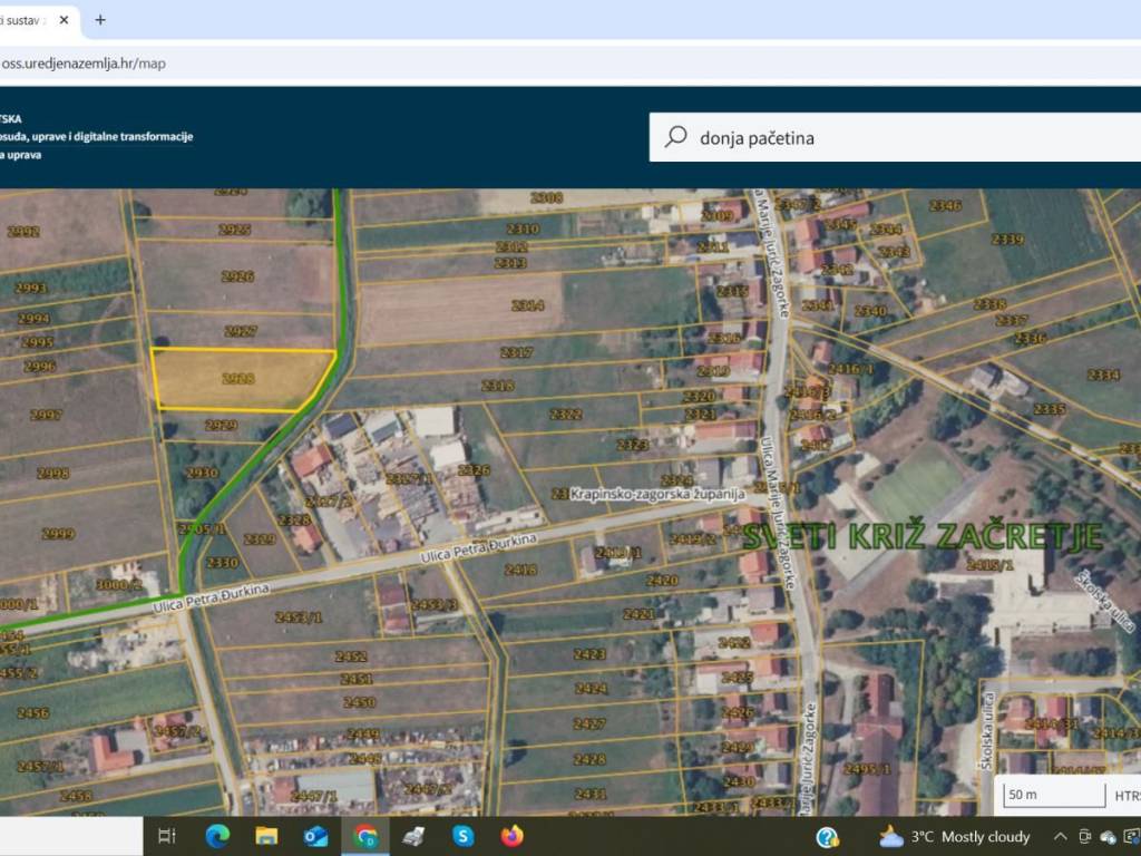 Na prodaju je građevinsko zemljište u Svetom Križu Začretju, udaljeno svega 10 km od centra Krapine, te 40 km od Zagreba. Parcela je površine 3014m2, na odličnoj lokaciji, osunčana cijelog dana, te se pruža prekrasan pogled na na okolne šume i livade. Nekretnina je idealna za gradnju obiteljske kuće, no može biti i dobra investicija u svrhu turizma. Zemljište je 100% u građevinskoj zoni, tako da je moguća parcelacija po želji investitora (2 gradilišta po 1500 m2, 4 gradilišta po 750 m2...). Vlasništvo je uredno i bez tereta. Za više informacija i razgled, stojimo Vam na raspolaganju. Damir 098/951-4026