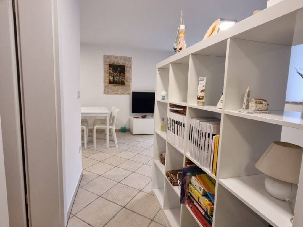 A beautiful 44.29 m2 apartment is located on the ground floor of a renovated stone house, in the old part of the town of Vrsar. It consists of a large living area (living room, dining room, kitchen), bathroom, and bedroom. Heating/cooling is via one air conditioning unit. It is being sold fully furnished as in the photos. The apartment also has a shared storage room. Parking is public, free of charge. It also represents great potential for tourist rental given the proximity of amenities: shops, restaurants, coffee bars, etc., but it can also be an option for year-round living.