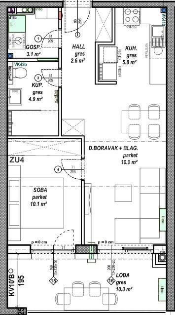 PRODAJA, STAN, ČAKOVEC Prodaje se stan površine 46,40 m2 s lođom površine 10,30 m2 na prvom katu niskoenergetske stambeno - poslovne zgrade na odličnoj lokaciji. Zgrada se sastoji od podruma, prizemlja, prvog, drugog i trećeg kata te sadrži ukupno 108 stambenih jedinica i 2 poslovna prostora. Moguć je odabir podnih obloga (keramika, parket ili laminat) te odabir unutarnje stolarije. Uz stan moguća je kupovina vanjskog parkirnog mjesta, garažnog mjesta bez spremišta ili garažnog mjesta sa spremištem. Za dodatne informacije stojimo na raspolaganju, a ovisno o načinu i količini plaćanja moguća je određena korekcija cijene.