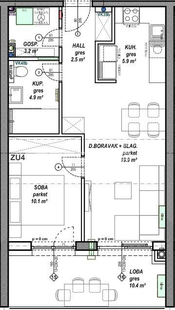 PRODAJA, STAN, ČAKOVEC Prodaje se stan površine 46,50 m2 s lođom površine 10,40 m2 na prvom katu niskoenergetske stambeno - poslovne zgrade na odličnoj lokaciji. Zgrada se sastoji od podruma, prizemlja, prvog, drugog i trećeg kata te sadrži ukupno 108 stambenih jedinica i 2 poslovna prostora. Moguć je odabir podnih obloga (keramika, parket ili laminat) te odabir unutarnje stolarije. Uz stan moguća je kupovina vanjskog parkirnog mjesta, garažnog mjesta bez spremišta ili garažnog mjesta sa spremištem. Za dodatne informacije stojimo na raspolaganju, a ovisno o načinu i količini plaćanja moguća je određena korekcija cijene.