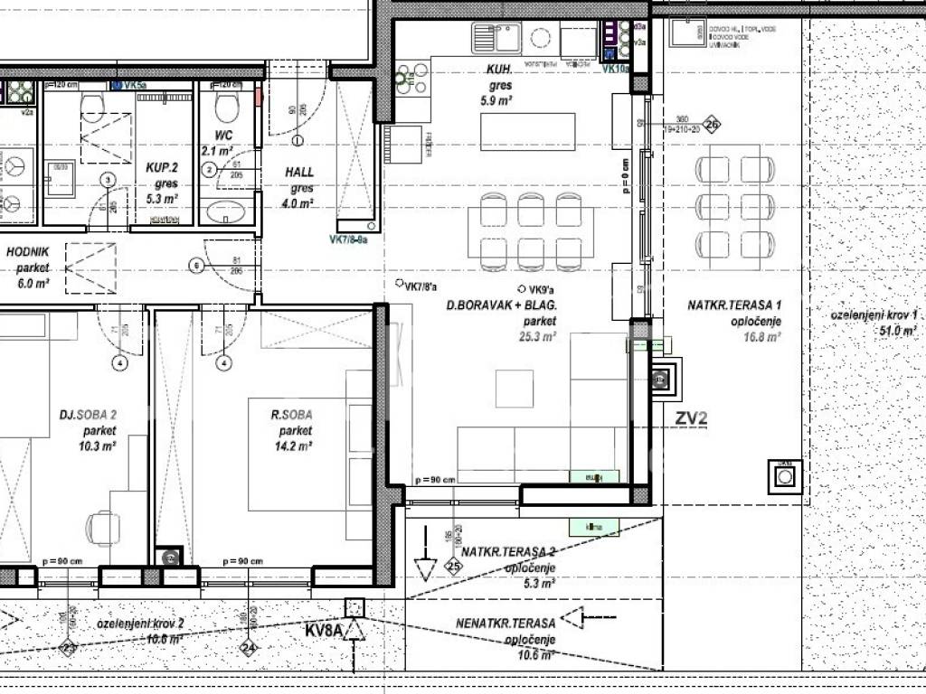 Prodaje se stan površine 92,30 m2 s terasama površine 32,70 m2 i ozelenjenim vrtom površine 61,60 m2 na trećem katu niskoenergetske stambeno - poslovne zgrade na odličnoj lokaciji. Zgrada se sastoji od podruma, prizemlja, prvog, drugog i trećeg kata te sadrži ukupno 108 stambenih jedinica i 2 poslovna prostora. Moguć je odabir podnih obloga (keramika, parket ili laminat) te odabir unutarnje stolarije. Uz stan moguća je kupovina vanjskog parkirnog mjesta, garažnog mjesta bez spremišta ili garažnog mjesta sa spremištem.