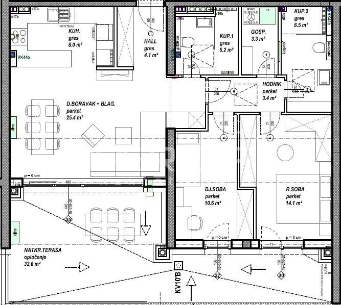 PRODAJA, STAN, ČAKOVEC Prodaje se stan površine 80,60 m2 s terasama površine 32,60 m2 na trećem katu niskoenergetske stambeno - poslovne zgrade na odličnoj lokaciji. Zgrada se sastoji od podruma, prizemlja, prvog, drugog i trećeg kata te sadrži ukupno 108 stambenih jedinica i 2 poslovna prostora. Moguć je odabir podnih obloga (keramika, parket ili laminat) te odabir unutarnje stolarije. Uz stan moguća je kupovina vanjskog parkirnog mjesta, garažnog mjesta bez spremišta ili garažnog mjesta sa spremištem. Za dodatne informacije stojimo na raspolaganju, a ovisno o načinu i količini plaćanja moguća je određena korekcija cijene.