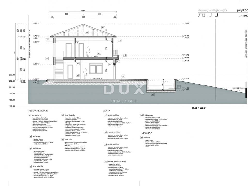 Projektirana je kao komforna samostojeća kuća s jednom stambenom jedinicom koja se proteže kroz dvije etaže te će se s kata buduće građevine pružati pogled na okolicu pa sve do mora.