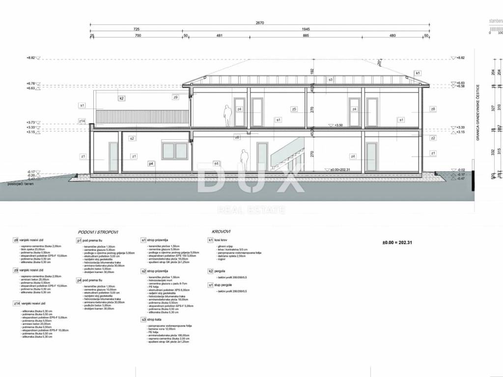 Zemljište ima pravomoćnu građevinsku dozvolu za izgradnju građevine stambene namjene mediteranske elegancije koja se svojim izgledom i stilom uklopa u postojeći ambijent i krajolik i bazena.