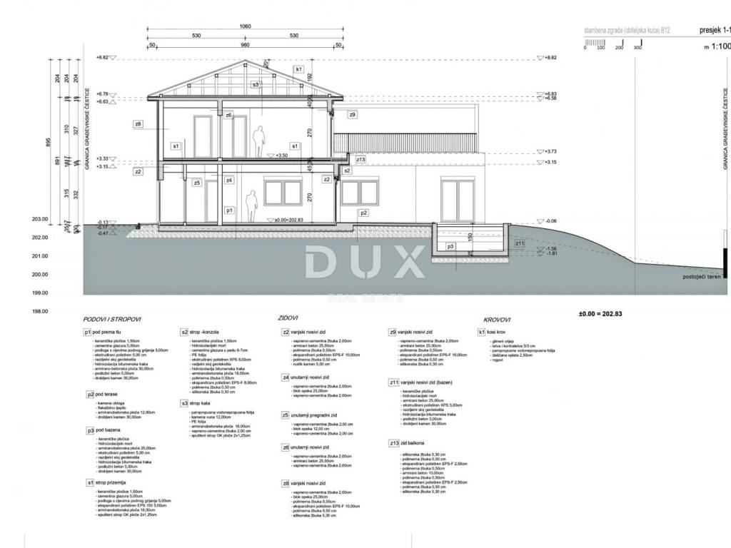 Zemljište ima pravomoćnu građevinsku dozvolu za izgradnju građevine stambene namjene mediteranske elegancije koja se svojim izgledom i stilom uklopa u postojeći ambijent i krajolik i bazena.