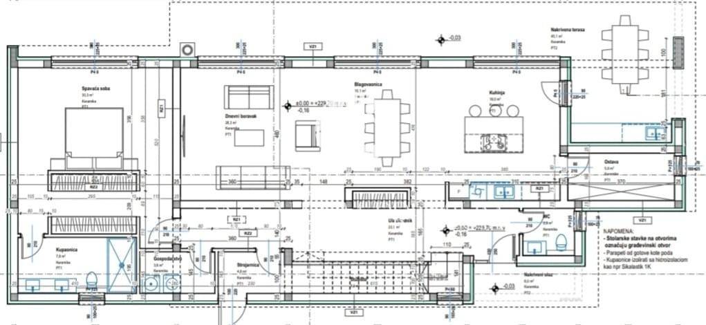 The house is divided into 3 floors. On the ground floor, there is an open living room with a kitchen and dining room, exceptionally lit by large glass walls that lead to the terrace where the summer kitchen is located and is connected to the comfortable heated swimming pool and the sun deck around it. On this floor there is also a bedroom with its own bathroom and terrace, an additional toilet, a laundry room, a pantry in the kitchen and a boiler room with an external entrance. Through the corridor we reach the staircase that leads to the first floor where there are 3 bedrooms with bathrooms and terraces with a partial view of the sea. On the last floor we go out to a spacious roof terrace with a canopy under which there is a jacuzzi and a sauna with a sunbathing area and an enchanting panoramic view of the sea.