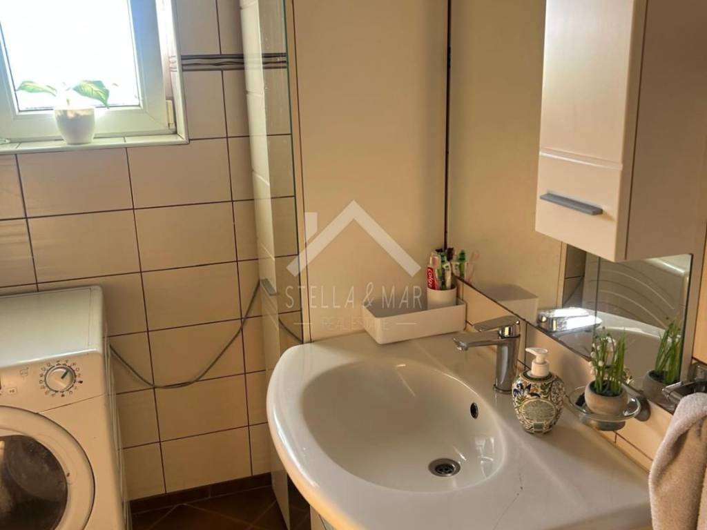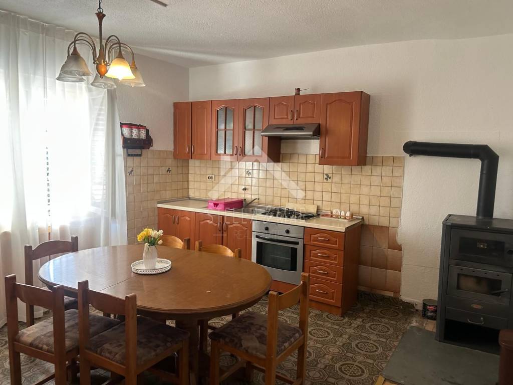 It is located on a plot of 910m2. On the ground floor there is an apartment with a hallway, living room, kitchen, dining room, two bedrooms, one smaller room, bathroom and covered terrace.