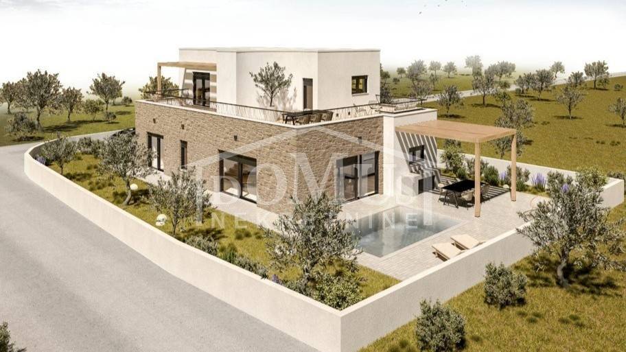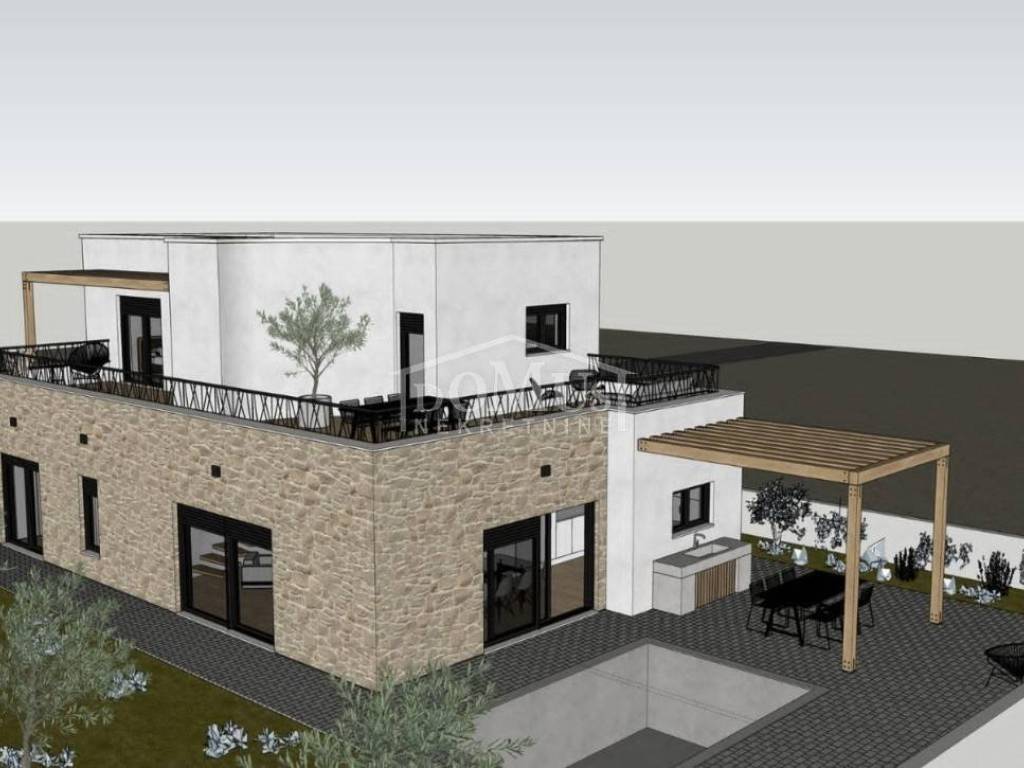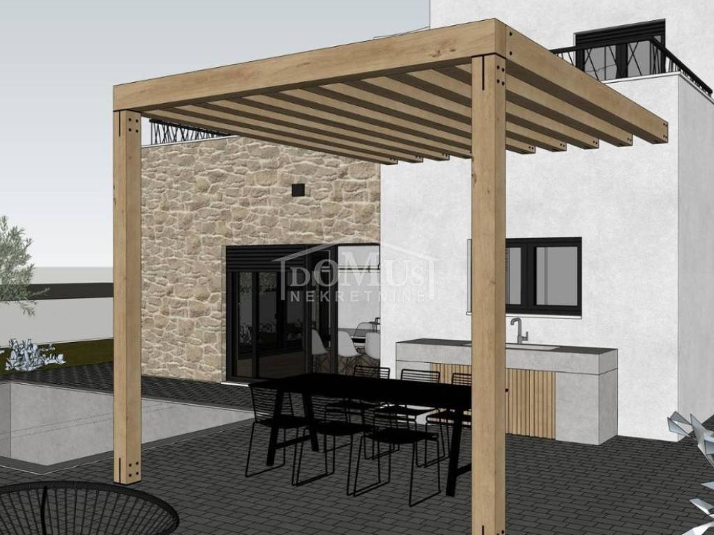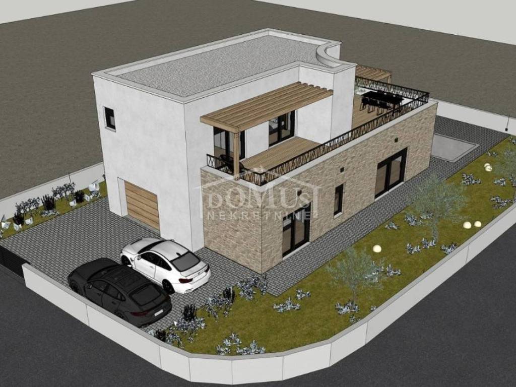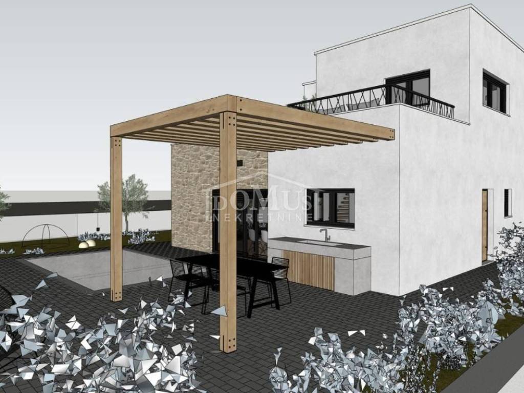 Vodice, a beautiful detached house with modern architecture and a functional layout, located in a quiet neighborhood, offering its future owners an ideal place to relax and escape the hustle and bustle of everyday city life.