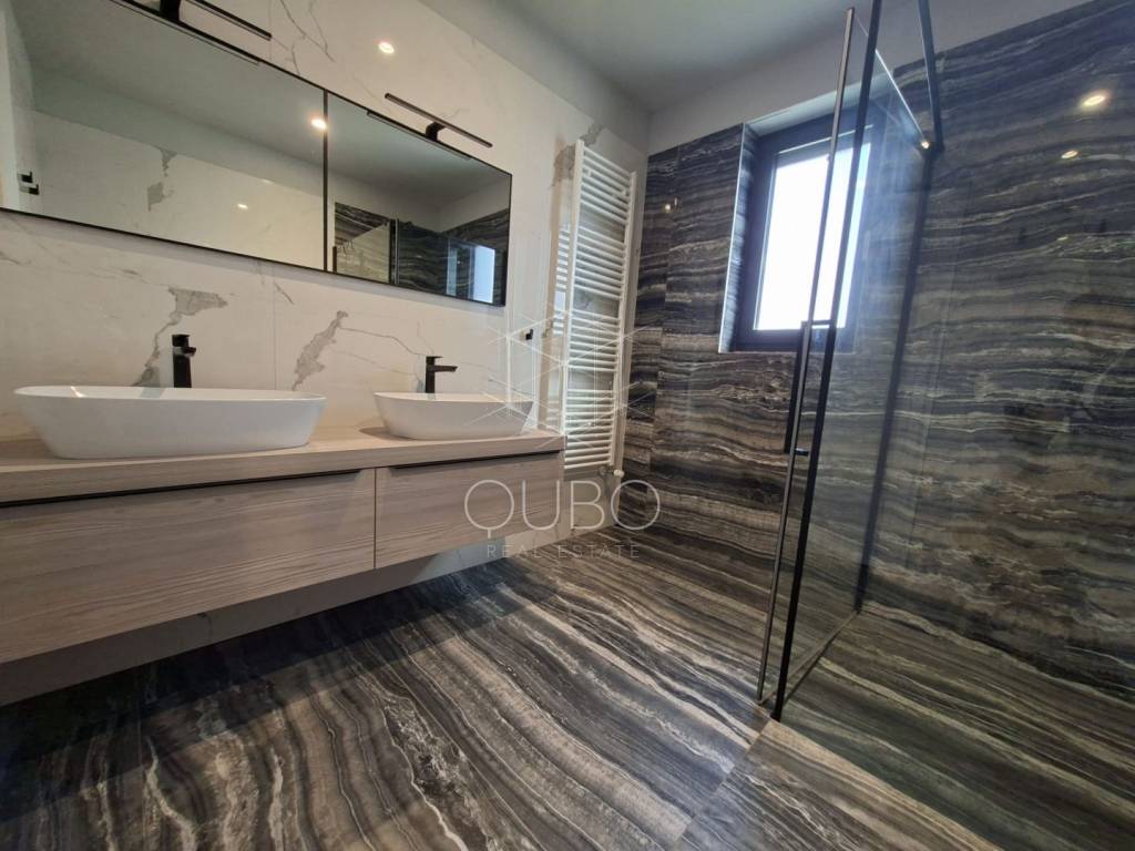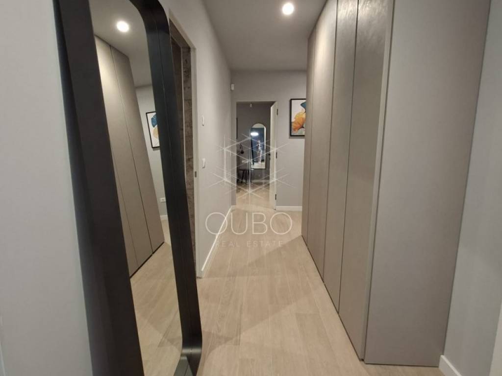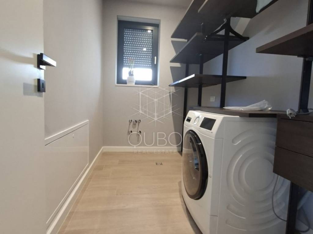 The private part of the apartment includes two comfortable bedrooms, each with its own en-suite bathroom, making this property especially attractive for family living, hosting guests or as a luxury holiday residence. Additional practicality is provided by a utility room and a separate guest toilet, while the overall impression is completed by high-quality finishes, modern design and carefully selected materials. A storage/technical room of 16.85 m² is located in the basement, and the apartment also comes with two parking spaces. The ownership documentation also states the listed surfaces and the use permit for the building.
