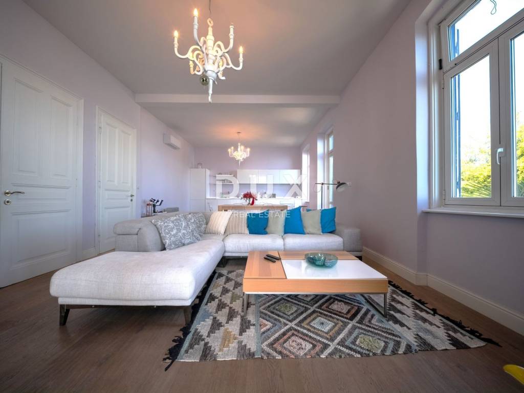 Positioned in the first row to the sea, within a charming historic villa, this elegant apartment represents a rare opportunity on the Opatija Riviera.