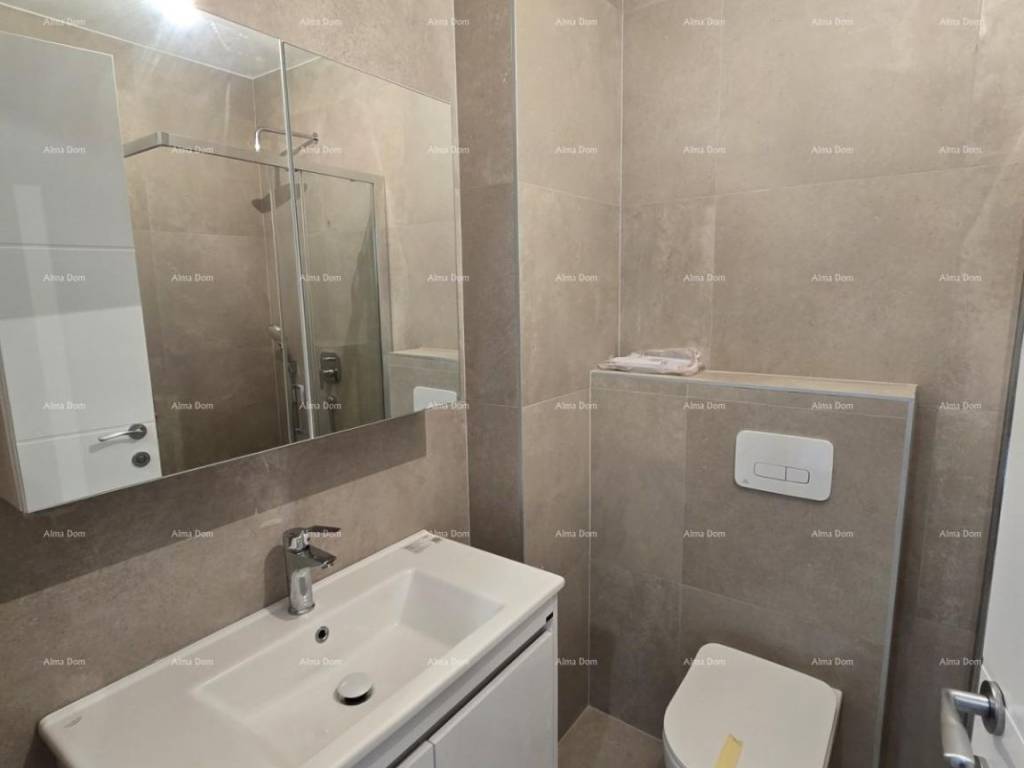 New Construction! A building with only 10 apartments - 2 entrances (5 apartments per entrance). We offer an apartment on the 2nd floor of the new building, which consists of a hallway with a wardrobe, a bathroom, two bedrooms, a kitchen with a dining area, a living room, and a covered terrace. The apartment includes the following features: - Electric underfloor heating in the bathroom and living area - Electric water heater in the bathroom - Air conditioning (inverter) in the living room - Glass railing on the terrace - Covered parking space The building is ready for occupancy in March 2026. Co-ownership. The apartment is located near the sandy beach in Medulin. Close to a pharmacy, cafes, and restaurants. The future buyer does not pay property transfer tax.
