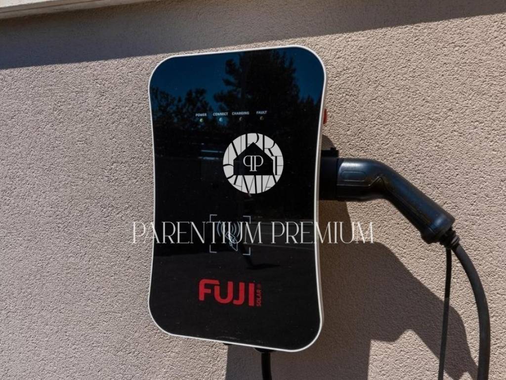 The house was built to an extremely high quality with all built-in sanitary ware in the bathrooms, top-quality parquet in the living area and rooms, solomatic blinds on the front walls, underfloor heating with a heat pump and air conditioning in all rooms.