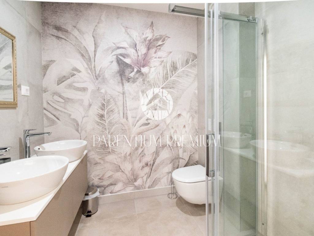 This apartment consists of an entrance hall, three spacious bedrooms, one of which has its own balcony, two bathrooms, one of which is in the master bedroom, and an additional guest toilet. The living room, dining room and kitchen are made according to the open space model with access to the terrace of 19.14 m2.