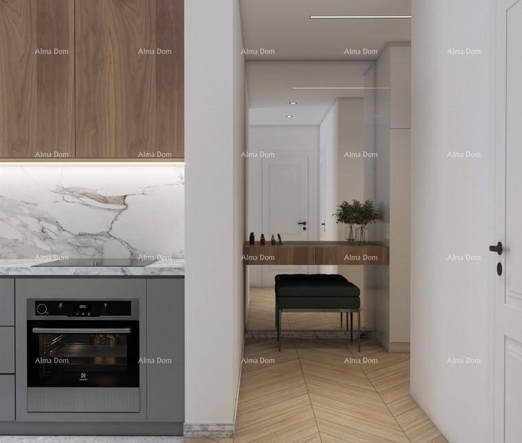 Apartment specifications: Exterior joinery - PVC with triple glazing and aluminum roller shutters with electric motor, facade - demit on the first floor 12 cm thick, on the ground floor 8 cm plus 2 cm Travertino bianco stone, cooling and heating - Mitsubishi air conditioners and electric underfloor heating in all rooms with wi-fi thermostats, final floor coverings - Marca Corona ceramic tiles. Interior designs are made for each apartment separately.