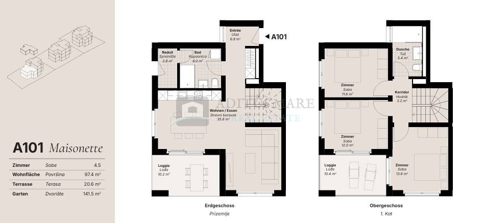 A101 dvoetažni 4,5-soban stan, ukupna površina 259,5 m 568.000