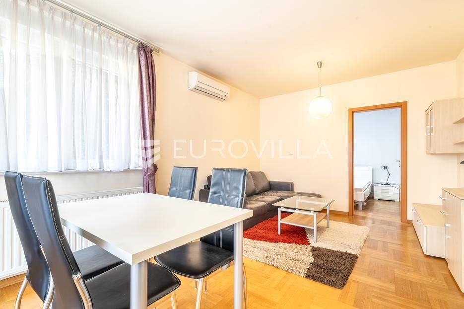 Savski gaj, dvosoban stan na visokom prizemlju u odlično održavanoj stambenoj zgradi.Sastoji se od ulaznog hodnika, dnevnog boravka s blagovaonicom, kuhinje, spavaće sobe, kupaonice i balkona.Stan je namješten opremljen klima uređajem, grijanje je etažno plinsko, a pripada mu vanjsko parkirno mjesto i spremište u podrumu.Odlična i mirna lokacija, u blizini dućana, javnog gradskog prijevoza, te svih potrebnih sadržaja.Za dodatne informacije stojimo Vam na raspolaganju.... Više na eurovilla.hr, ID: 912991