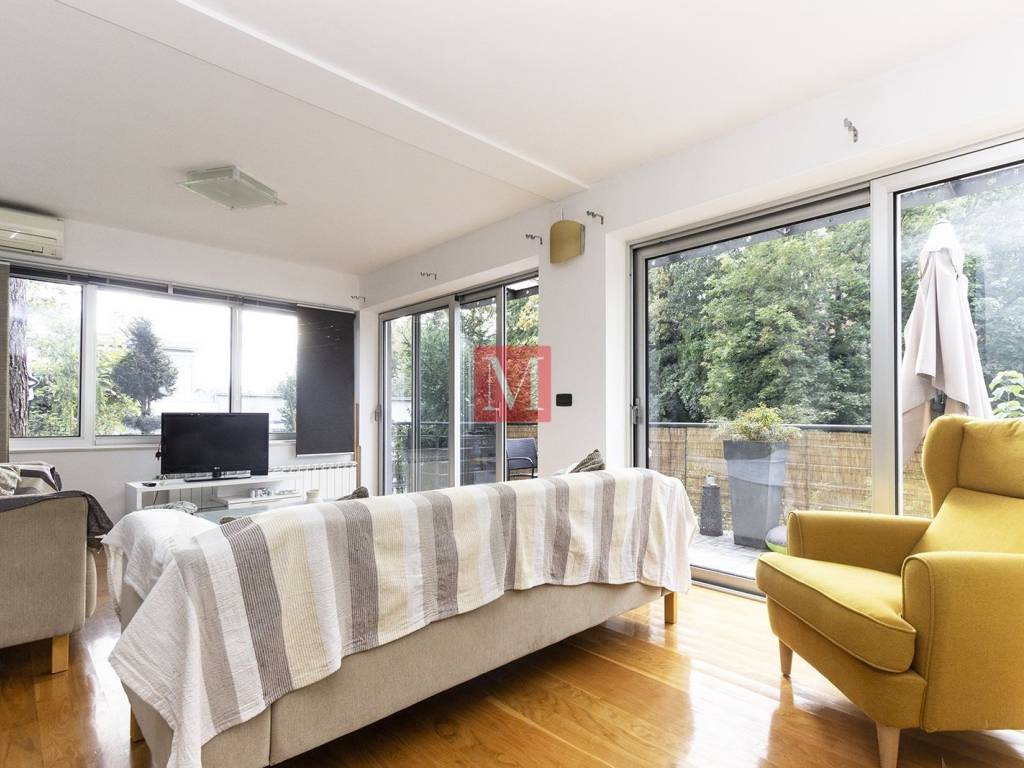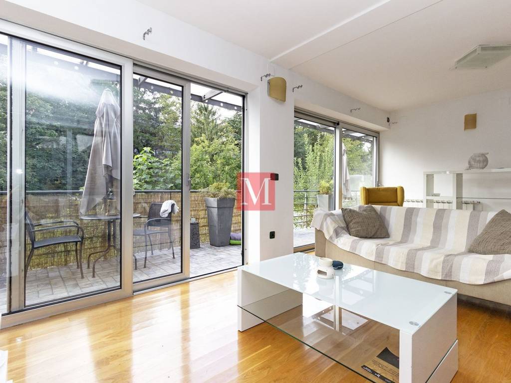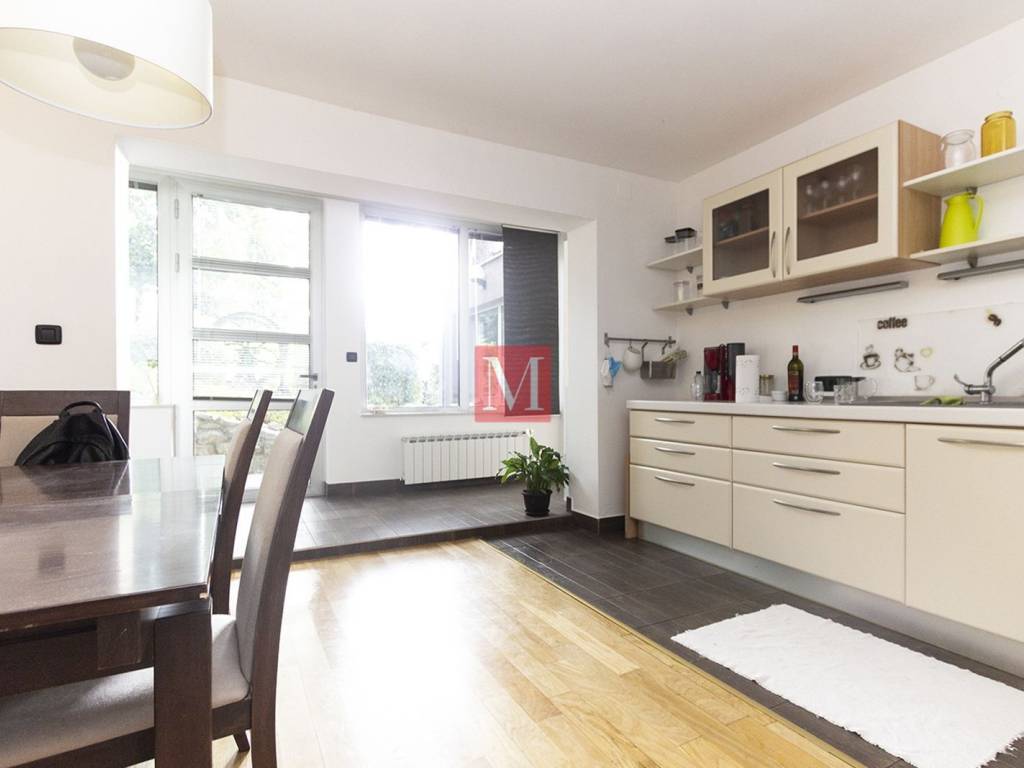 Beautiful, modern apt. of 100 m2. situated on the 1st floor of a nice newer building located in the very vicinity of the British square. It consists of a kitchen with dining area, spacious living room 2 bedrooms, large bathroom, guest toilet, storage and 2 terraces. Parking space in the yard also goes with the apartment. Quiet, green surroundings and just a step away from downtown Zagreb hustle and bustle. Agency fee: 1 monthly rent + VAT.