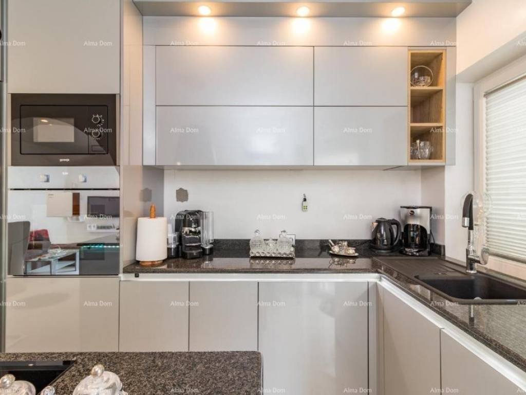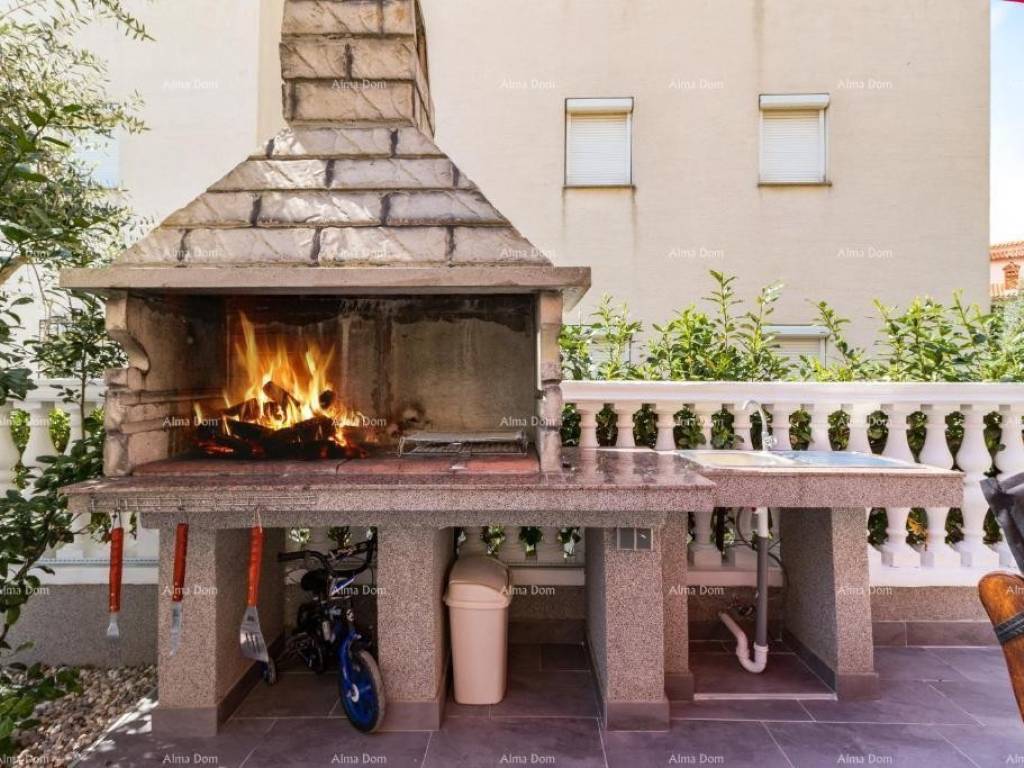 We are selling an apartment with a private pool in a great location. The apartment consists of two bedrooms, a bathroom, a toilet, a kitchen with a dining room and a living room that opens onto a fenced garden with a swimming pool and barbecue. The apartment has an area of approx. 80 m2, the rest is the area of the garden and terrace with coefficients.