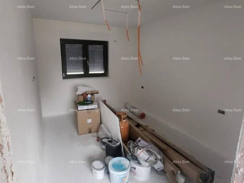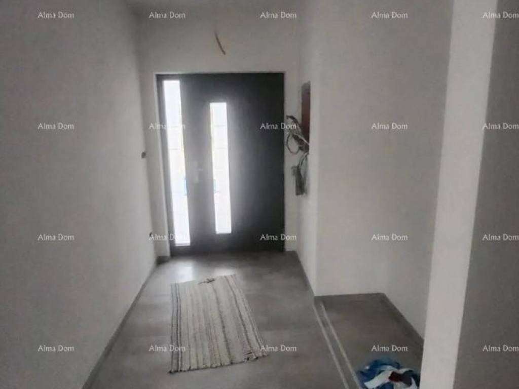 A house for sale in the town of Labin, a spacious new house is located in a quiet suburb. This property impresses with its simple but elegant appearance and practical space layout.