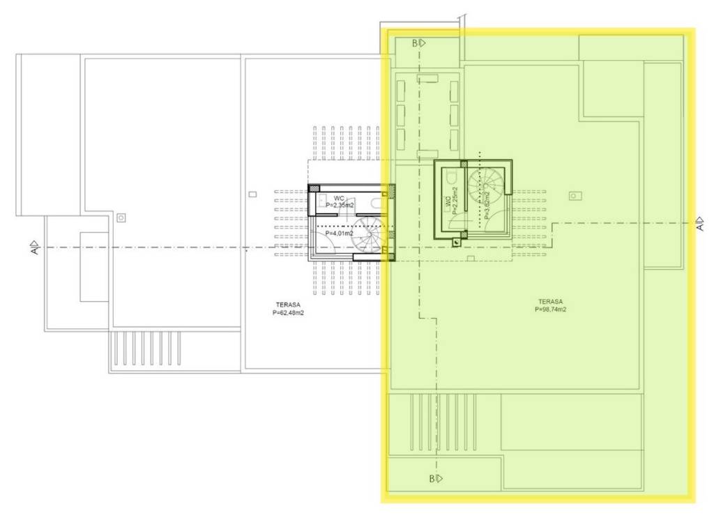 L’appartement est situé au 2ème étage de l’immeuble et se compose de : hall d’entrée, salle de bain commune, chambre 1, chambre avec salle de bain privative et terrasse privée de 17,82 m2, vestibule, WC commun, chambre 3, cuisine avec salle à manger et salon ainsi qu’une terrasse de 30,56 m2, accès à la terrasse sur le toit où se trouve une magnifique terrasse de 94,74 m2 avec WC et installations pour une cuisine d’été. L’appartement dispose d’une place de parking aménagée devant l’immeuble.