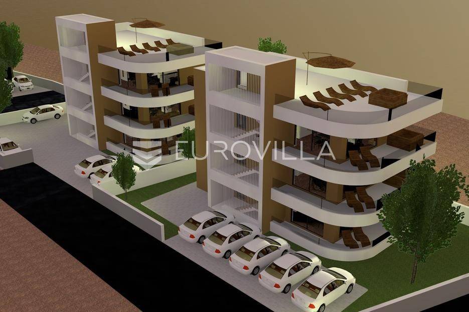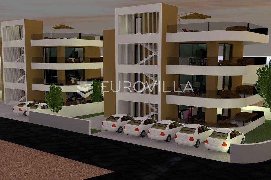 Vir, trosoban stan na drugom katu stambene zgrade ukupne površine 107,85 m2.Stan se sastoji od hodnika, kuhinje, blagovaonice i dnevnog boravka površine 37,92 m2, tri spavaće sobe površina 11,04 m2, 10,99 m2 i 7,68 m2, kupaonice površine 5,92 m2, gostinjskog wc-a, spremišta površine 1,65 m2, natkrivene terase površine 22,82 te nenatkrivene terase površine 59,45 m2.Oprema:Grijanje i hlađenje uređeno je putem klima uređajaPVC stolarija sa električnim roletama i komarnicimaPodno grijanje u kupaonicamaKvalitetna keramika i sanitarijeParket u dnevnom boravku i blagovaoniciNa krovnoj terasi nalaze se instalacije za ljetnu kuhinju i jacuzziNa terasi se nalazi jacuzzi, a iz stana se pruža pogled na more.Stanu pripadaju dva vanjska parkirna mjesta sa priključkom za električna vozila.Stan se nalazi na izvrsnoj lokaciji na svega 250 metara udaljenosti od mora.Udaljenost od centra mjesta iznosi 200 metara te od autobusnog kolodvora 700 metara.Predviđeni završetak radova je na jesen 2026. godine.Stojimo Vam na raspolaganju za dodatne informacije i razgledavanje.... Više na eurovilla.hr, ID: 672355