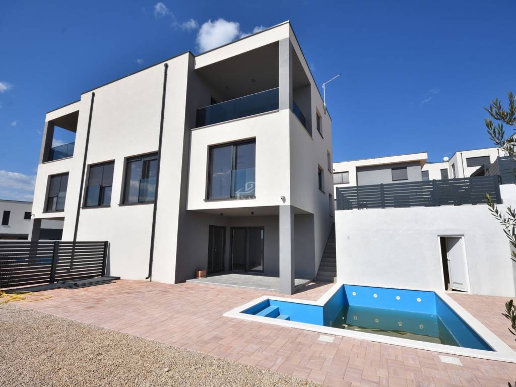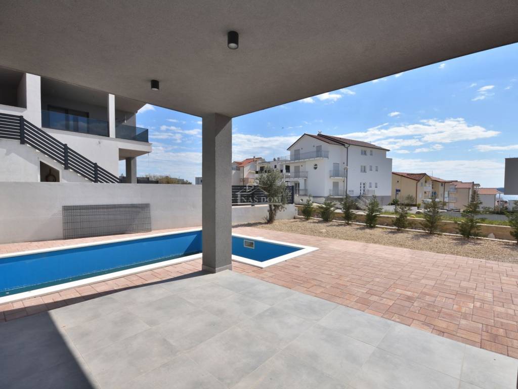 VODICE – Maison jumelée moderne avec piscine, jardin et vue panoramique sur la mer