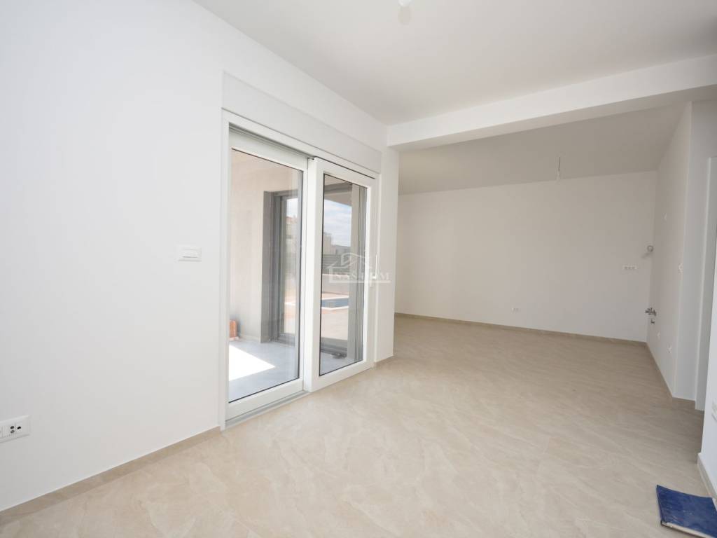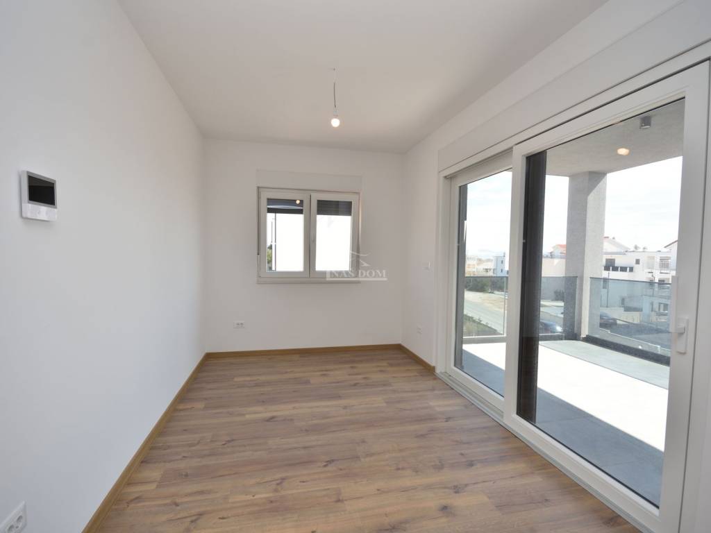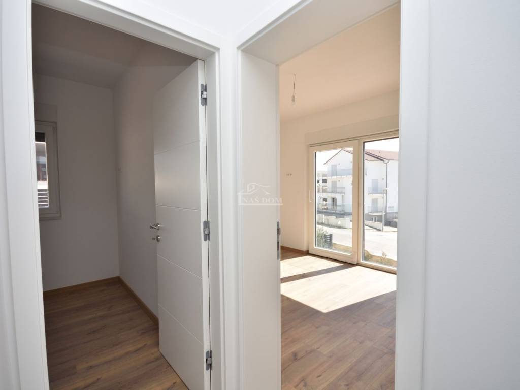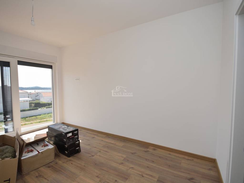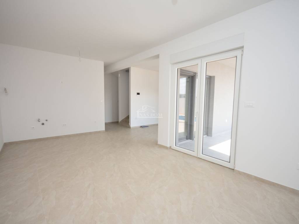 Située dans un emplacement attractif à Vodice, une maison jumelée moderne S2 de qualité supérieure est en vente, avec piscine, jardin spacieux et vue dégagée sur la mer et la ville.