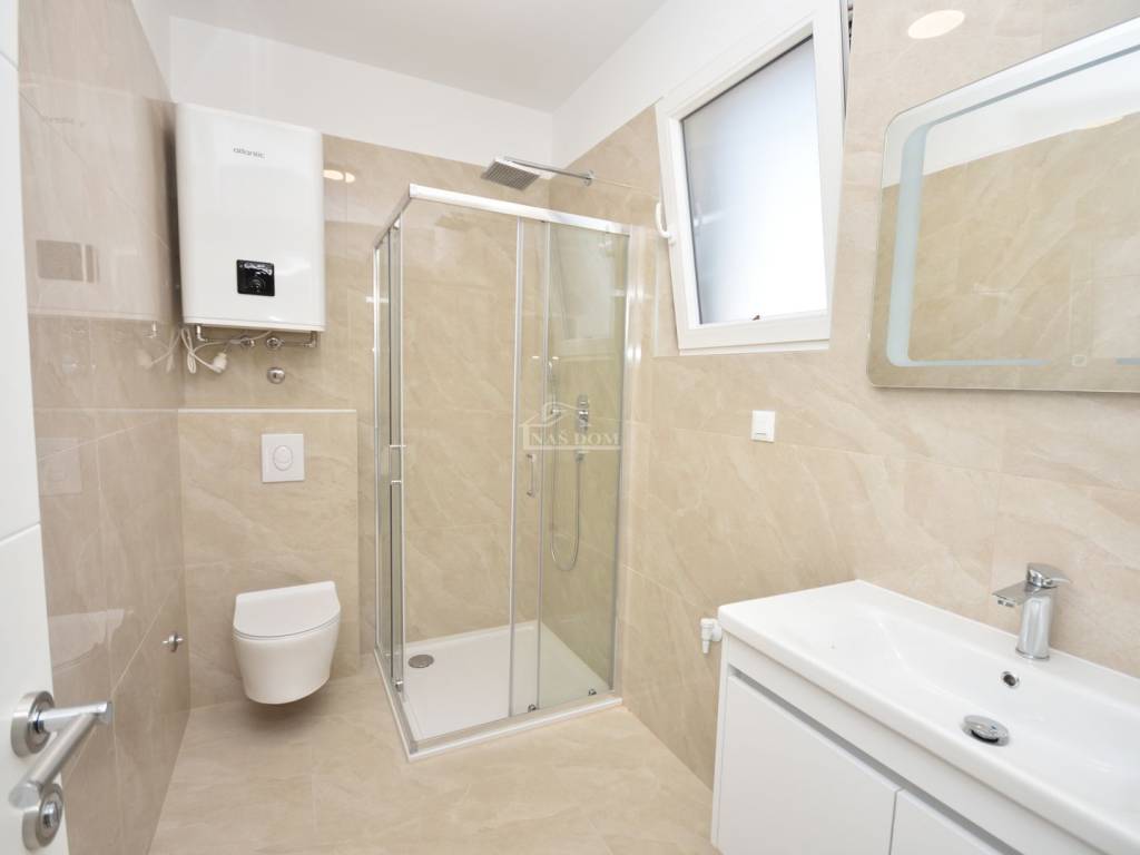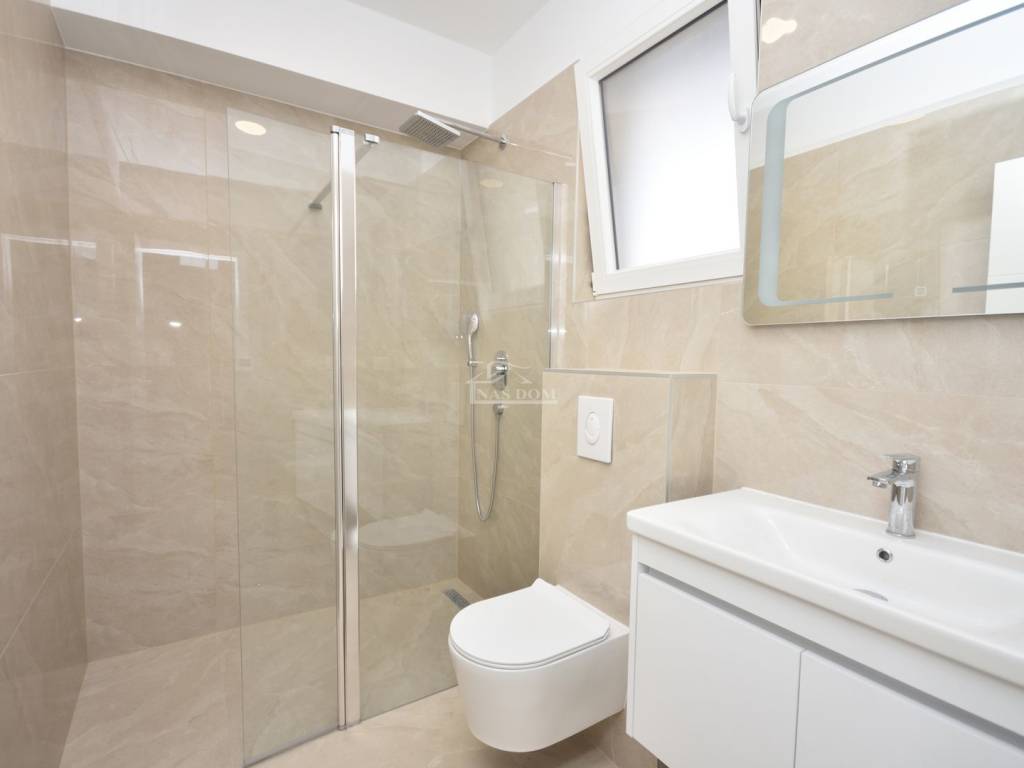 Lors de la construction, des matériaux de haute qualité ont été utilisés, et un équipement moderne et fonctionnel a été installé pour garantir un confort maximal : façade en polystyrène expansé de 10 cm, porte d’entrée anti-effraction et coupe-feu, menuiseries PVC avec volets électriques et moustiquaires, climatiseurs dans toutes les pièces, chauffage électrique au sol dans les salles de bains, sanitaires modernes et revêtements de sol de qualité, garde-corps en verre sur les terrasses.