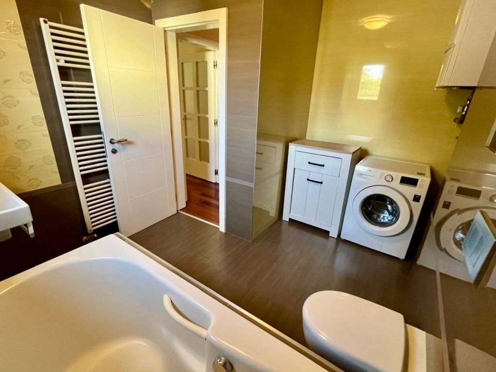 L’appartement dispose d’une disposition fonctionnelle avec deux chambres à coucher, et son orientation sud-est permet une abondance de lumière naturelle tout au long de la journée. L’équipement comprend une cuisine avec électroménagers, un lave-vaisselle, un lave-linge, une baignoire, une télévision, un lit et un bureau.