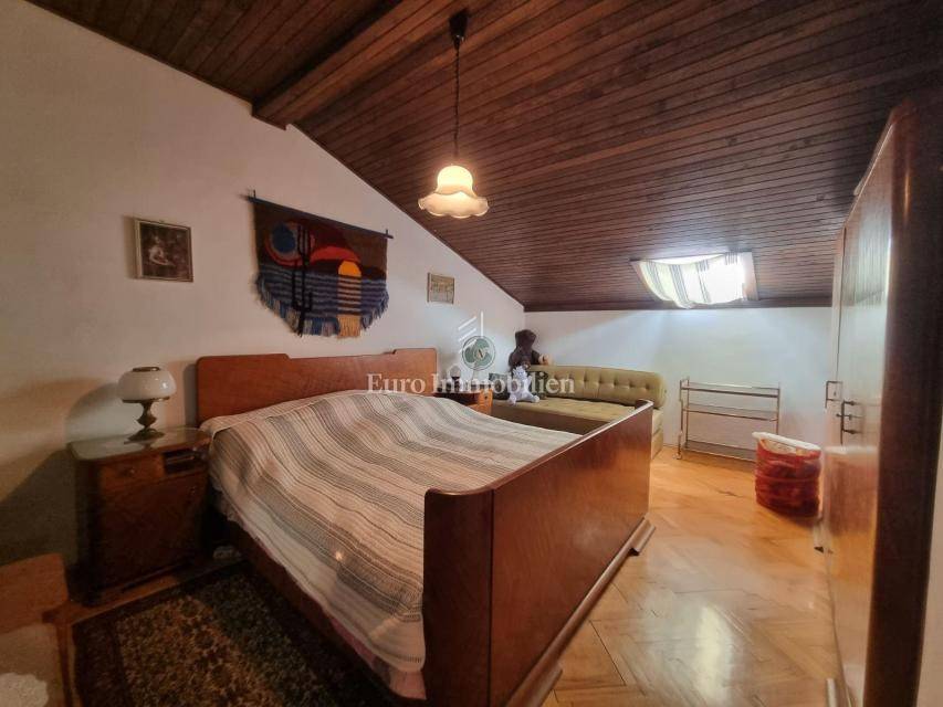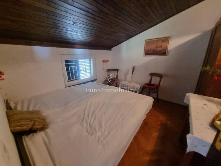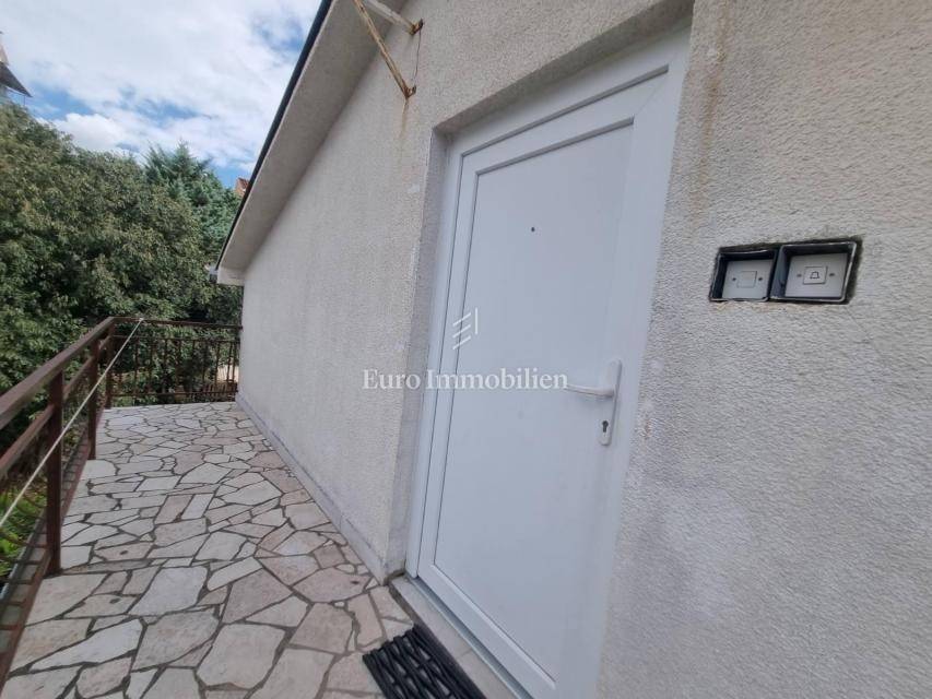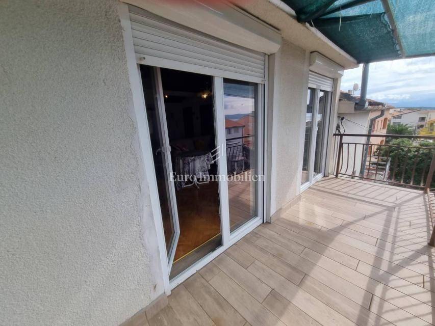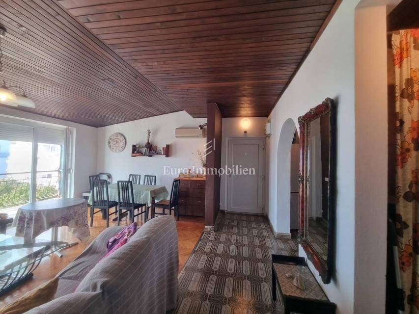 Crikvenica - An apartment with a garage in a smaller residential building with a total area of 85 m2 is for sale. The apartment consists of two bedrooms, kitchen, dining room, living room, bathroom, hallway, terrace and balcony with a view of the sea. The apartment has a garden with parking spaces and a barbecue. The property is furnished and air-conditioned. The apartment has a lot of potential, and with a minor adaptation, it becomes a perfect property for living or for tourist rental.