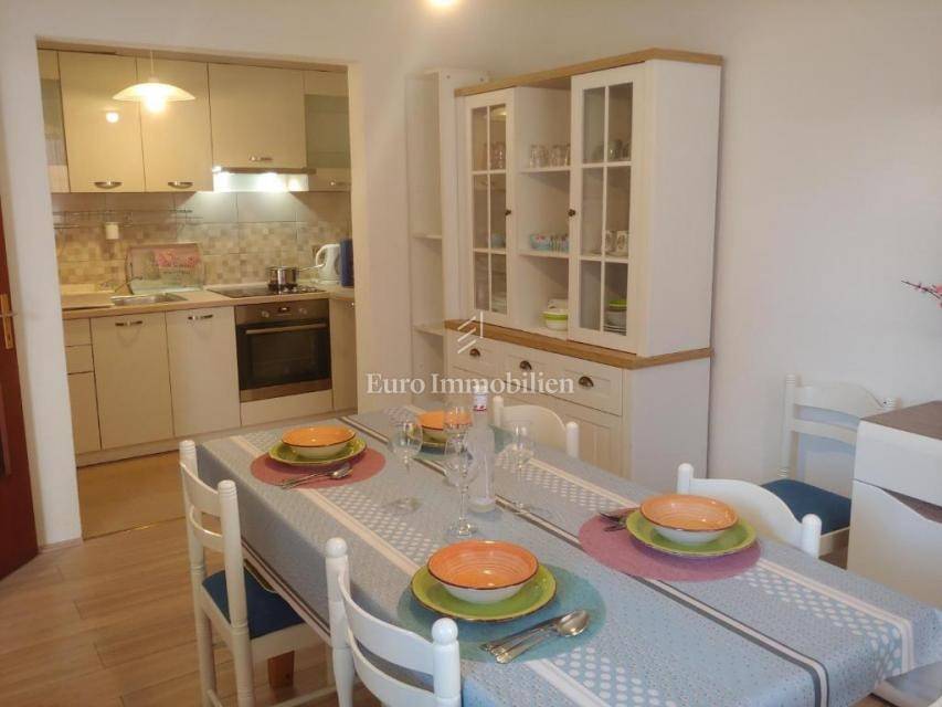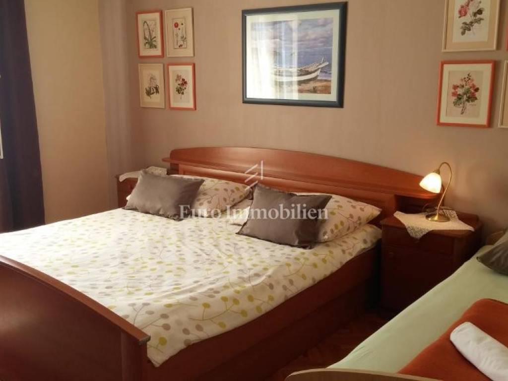 In the basement, in addition to the garage, there is also a spacious two-room apartment with a terrace and garden. An external staircase leads to the ground floor of 100 m2, which is in nature a spacious apartment with 3 bedrooms, a bathroom, a toilet, a kitchen and a living room with an exit to the terrace. On the same floor there is also a smaller studio apartment with its own garden and a spacious covered terrace. The ground floor can also be accessed from the back of the house. On the first floor there is an apartment with the same layout as the ground floor, while in the attic there is a smaller apartment with one bedroom, a kitchen with a living room, a bathroom and a small balcony with a beautiful view of the sea.