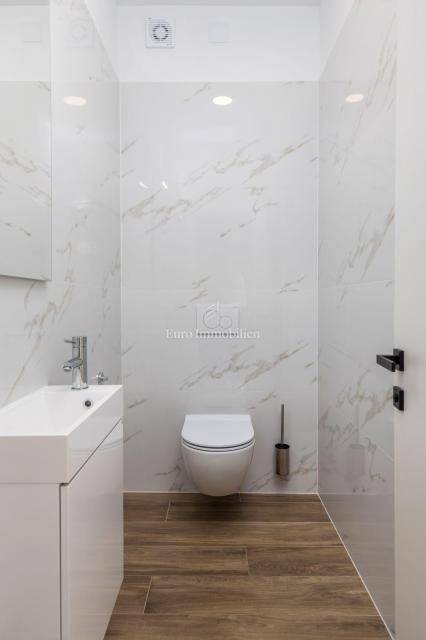 MATERIALS are of top quality and from renowned manufacturers. Aluminum carpentry with lifting and turning el. blinds and three-layer tinted iso glasses. The cladding of the buildings is at the level of energy class A, A+, the interior is decorated so that the floors are tiled with top quality Italian ceramics, except in the rooms where the top quality three-layer parquet is installed, the walls are painted with the colors of the top manufacturer with details embodied by decorative techniques. The interior joinery is a combination of wood and glass, the interior stairs are so-called floating stairs with a fence, electrical equipment, modular switches and sockets from a top manufacturer, lighting is of a designer character, one part of which is unique (hand made).
