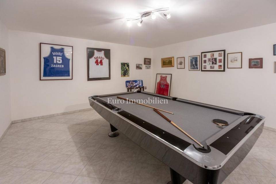 The house consists of three floors: Basement - a large open space for socializing with a toilet and laundry room. Dry, high, airy, a rarity for a basement room. Ground floor - designed as a living room with a kitchen and dining room, from which there is access to two terraces. A northern, covered terrace with a grill and a southern one with a sunbathing area and a large swimming pool. On this floor there is also a library and a bedroom with a bathroom. First floor - 5 bedrooms and 4 bathrooms with access to terraces from which there is a spectacular view of the sea.