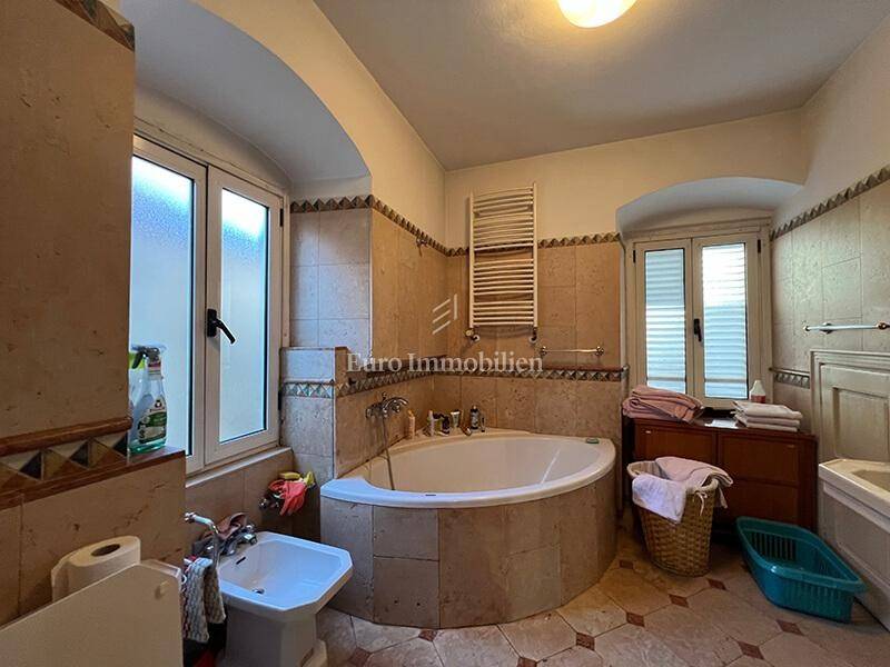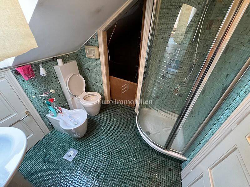 Four-bedroom apartment in the center of Makarska, second row from the sea and the promenade. Located on the second floor and in the attic of a renovated stone building (2000: concrete floors, roof, electrical and plumbing installations).