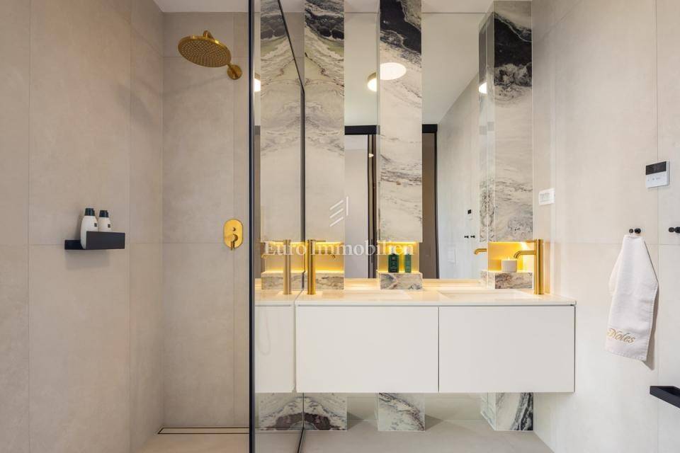 In an exceptional location, right by the sea, a modern villa is for sale. It extends over three floors and offers top-level comfort and impressive panoramic views.