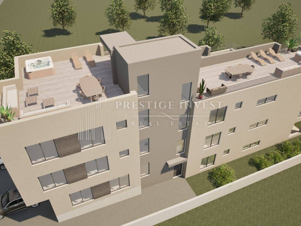 In an attractive location in Bibinje, only 80 meters from the sea, a modern apartment with a roof terrace in a quality new building is for sale.