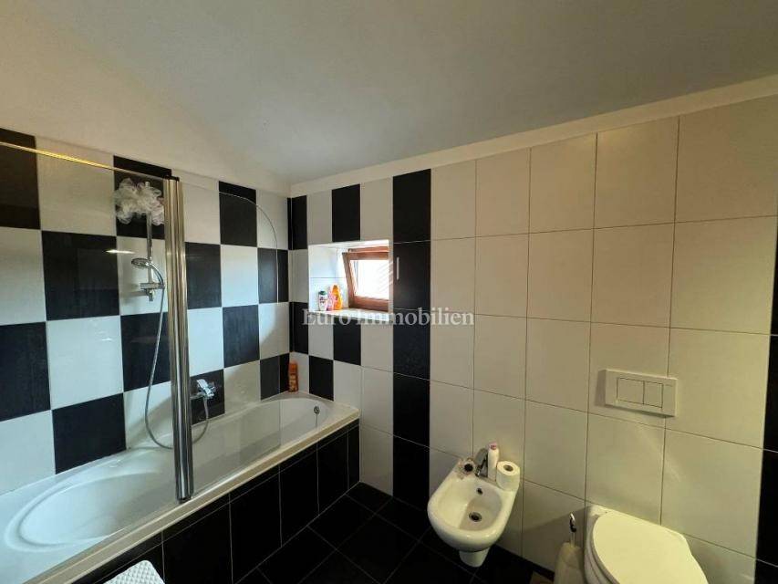 The house extends over four floors and has a total of 180 m2 of living space. On the ground floor there is a studio apartment consisting of an entrance hall, kitchen, dining room, bathroom and bedroom. On the first floor there is also a studio apartment consisting of an entrance hall, bathroom, kitchen with dining room, and living room. Internal stairs lead to the second floor, where there is a two-story apartment. The apartment consists of a kitchen with a dining room and a storage room in the lower part, and two bedrooms and a bathroom on the first floor.