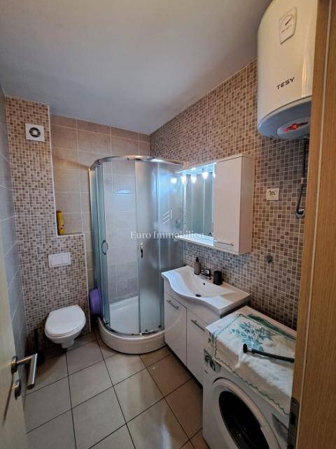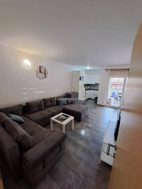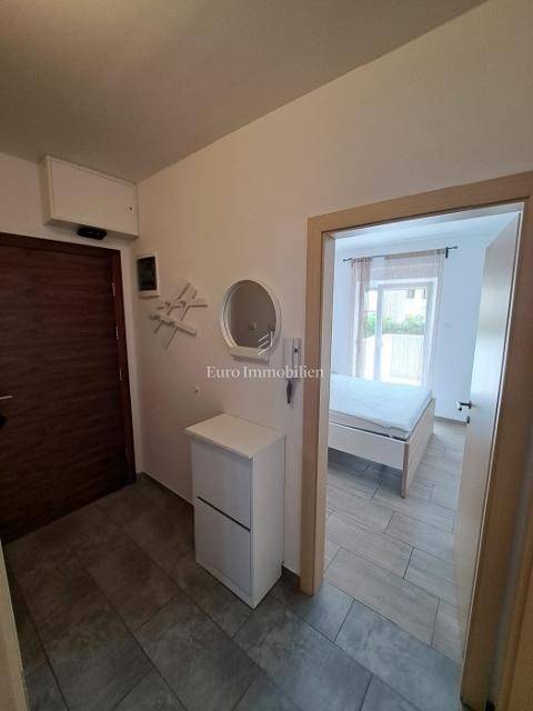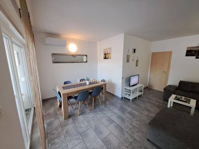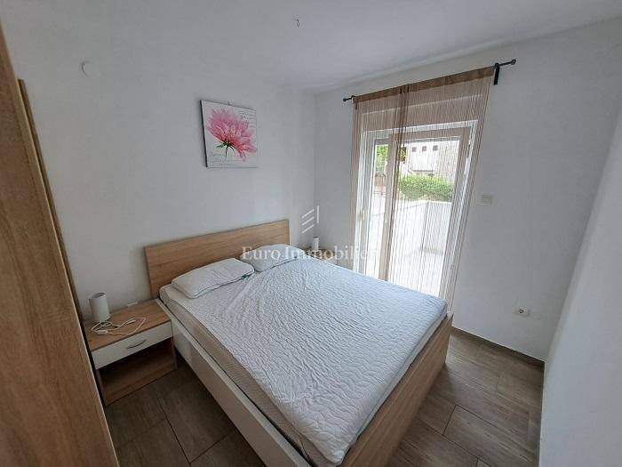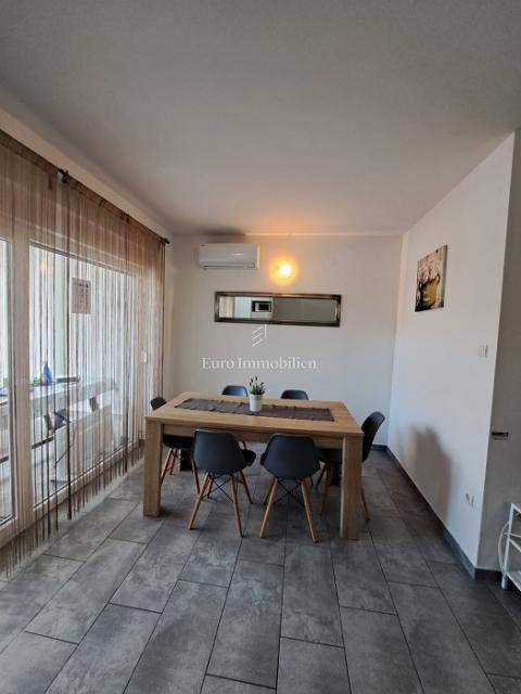 It consists of a hallway, 2 bedrooms, terrace, bathroom, living room, kitchen, dining room, storage room, loggia, terrace and garden. It is air-conditioned and fully furnished. It also has a parking space. Distance to the beach 10 minutes walk.