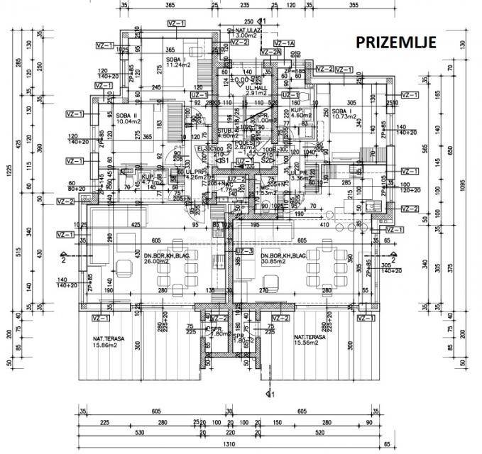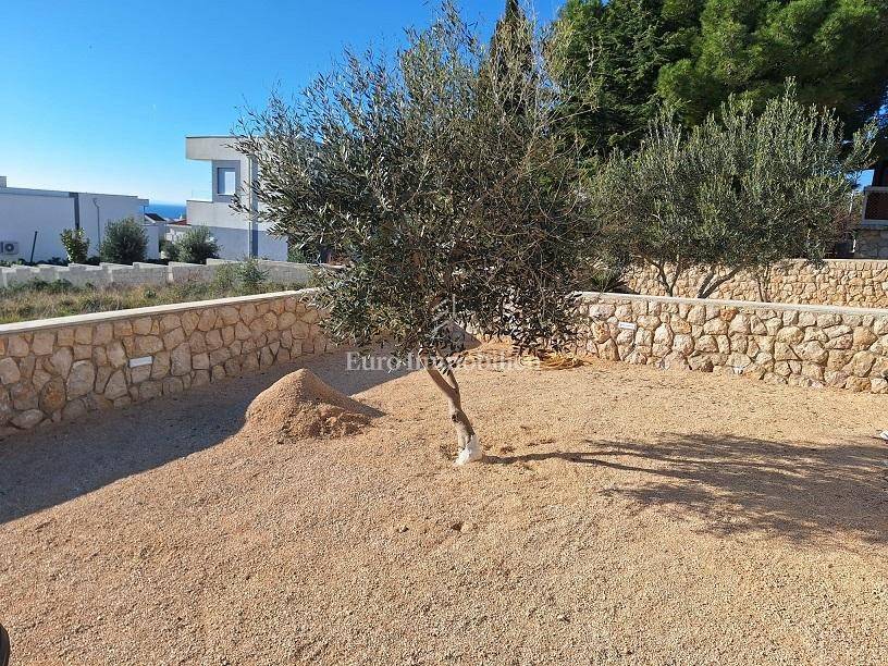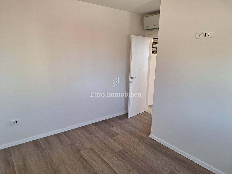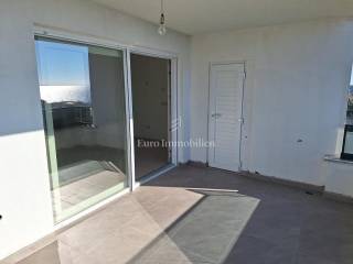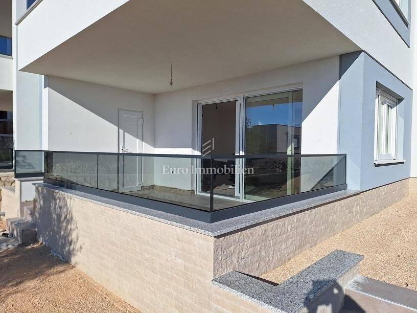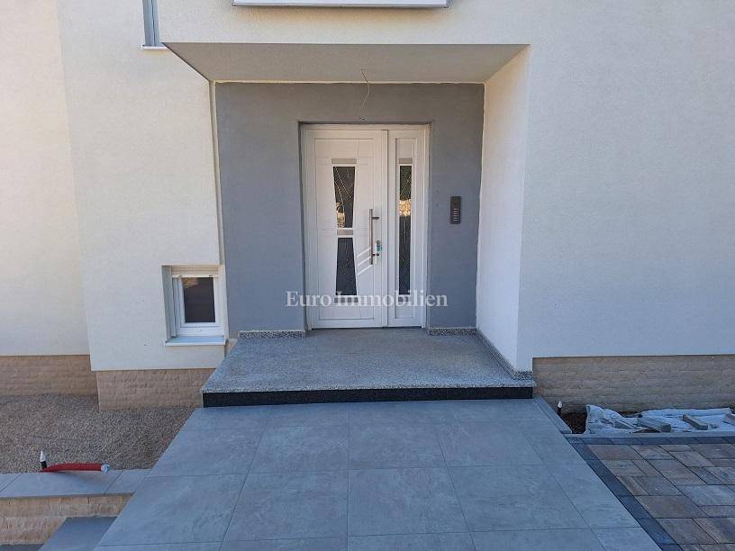 NOVALJA - apartment 76 m2 with a yard, on the ground floor of a new building It consists of an entrance hall, bathroom, toilet, bedroom, storage room and living room with kitchen and dining room from which you can exit to a large, covered terrace. It is surrounded by a garden of 105 m2. The apartment also has a parking space of approximately 18.53 m2. In the yard there are installations for charging electric cars. The apartment is equipped with top-quality sanitary ware and bathroom furniture. The beach is about a 10-minute walk away.