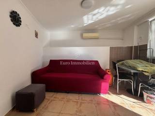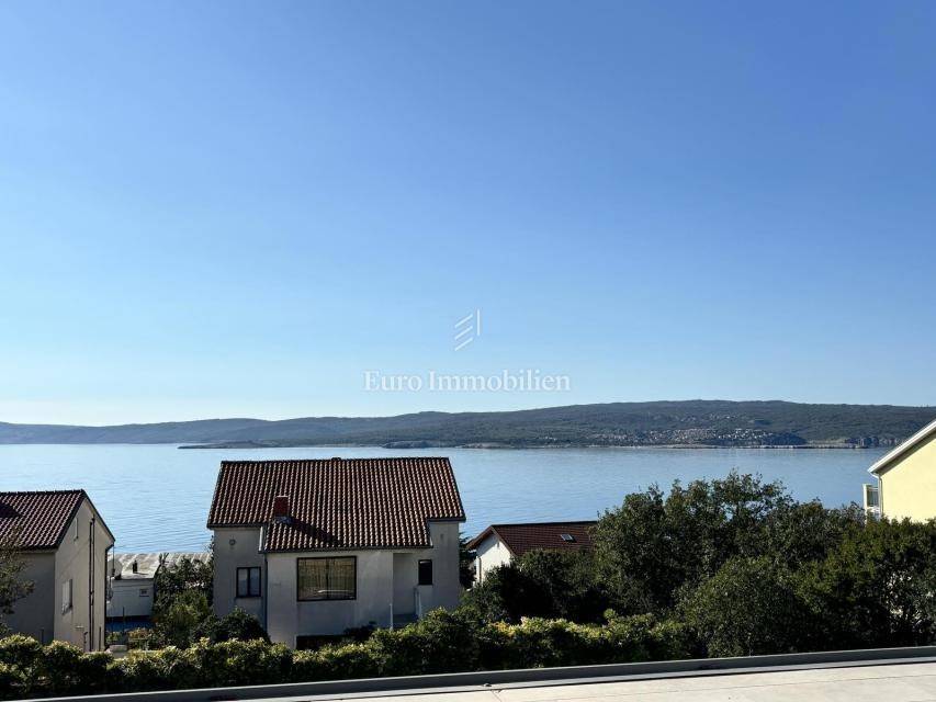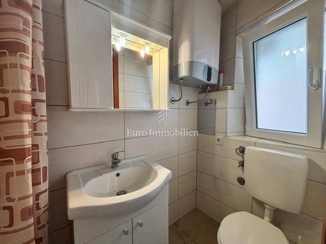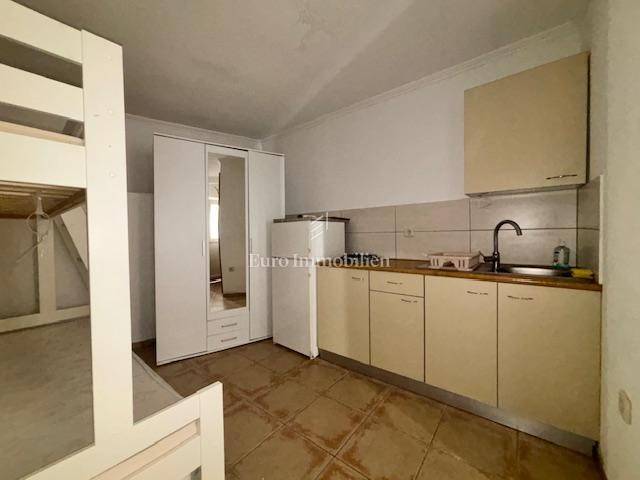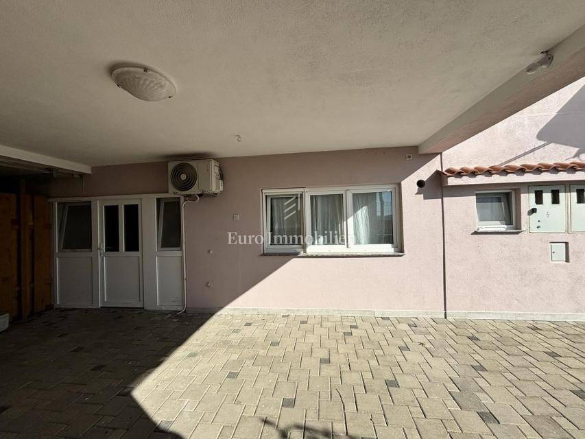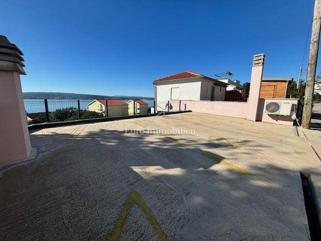 Crikvenica - lower ground floor apartment in a very good location with a view and near the sea It consists of a living room, kitchen, bathroom, bedroom and uncovered terrace, with an attached garage of 12.19 m2 which has been converted into a studio apartment. The apartment has 3 private parking spaces.