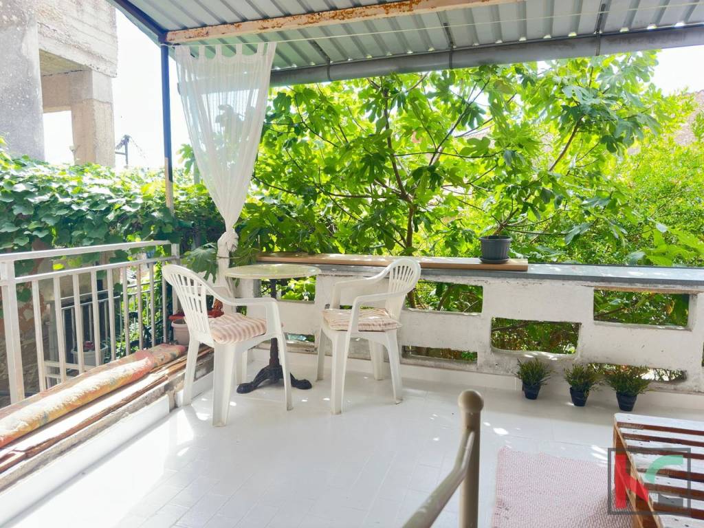 Kuća se sastoji od ulaznog hodnika, kupatila, dnevnog boravka, kuhinje sa blagovaonom i sobe u prizemlju te dvije spavaće sobe i velikog balkona na prvom katu kuće. Balkon je smješten na zapadnoj strani i sklonjen od gradske vreve te pruža mir i privatnost tokom cijelog dana. Osim velikog balkona, tu je i dvorište, drvarnica i koj jedan manji balkon.
