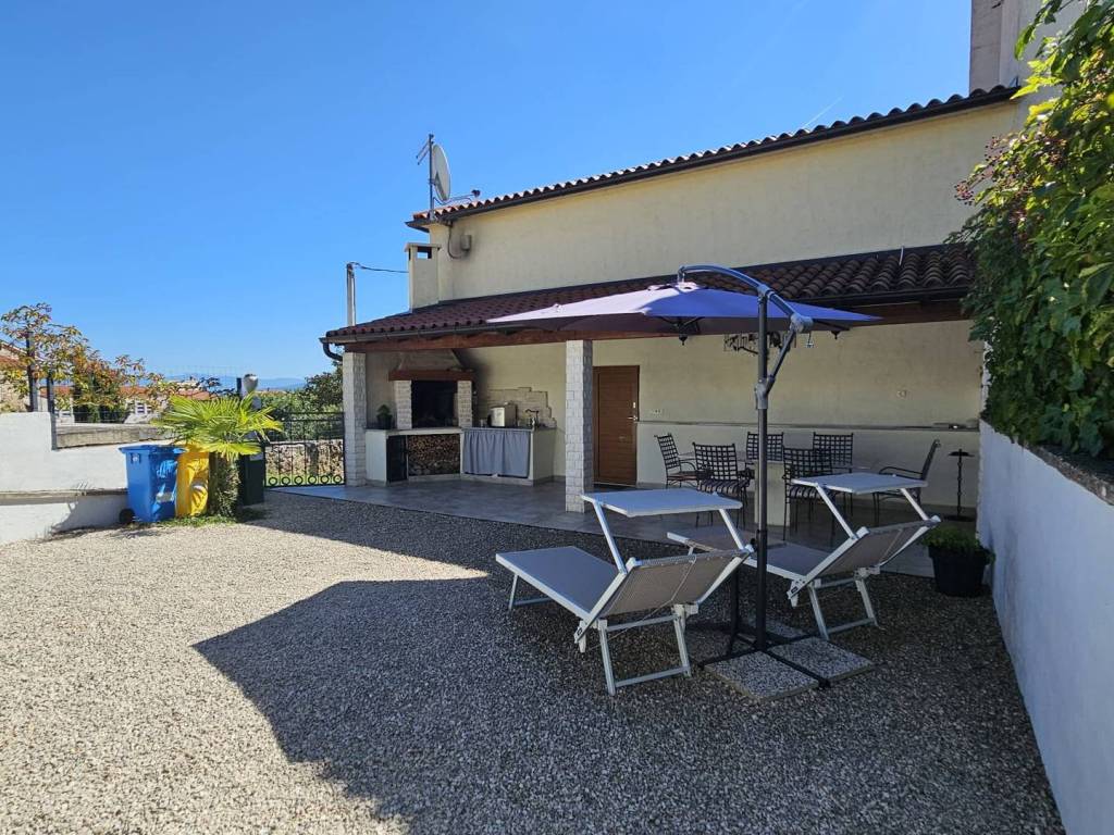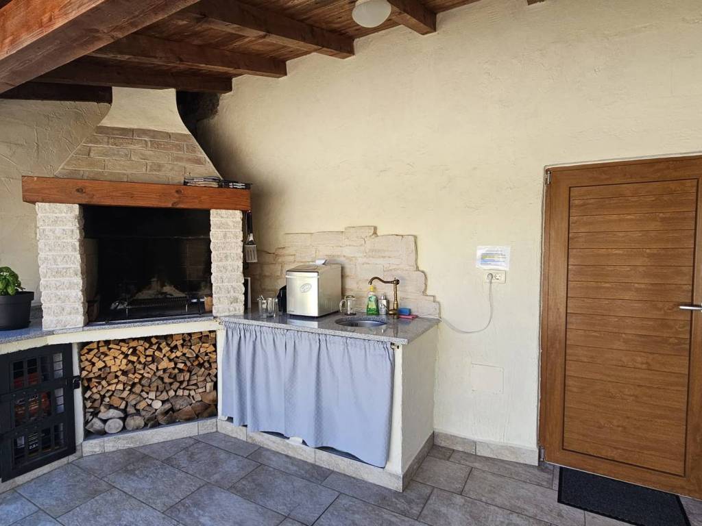 U prizemlju se nalazi ugodno uređen dnevni prostor koji se sastoji od otvorene kuhinje sa blagovaonom i dnevnim boravkom. U središtu dnevnog boravka nalazi se kamin koji daje poseban ugođaj i toplinu svakodnevnom životu. Tu se također nalazi jedna kupaonica. Iz dnevnog boravka se izlazi na prostranu natkrivenu terasu, idealnu za opuštanje i boravak na otvorenom. Vanjski roštilj je savršen za druženja s obitelji i prijateljima. U nastavku je ograđeno dvorište prekriveno kamenčićima što prostoru prostoru daje prirodan izgled, a istovremeno nudi jednostavnost održavanja. Pripremljene su instalacije struje i vode za bazen. Dodatna pogodnost je punionica za električni automobil, što ovu nekretninu čini prilagođenom suvremenim potrebama.