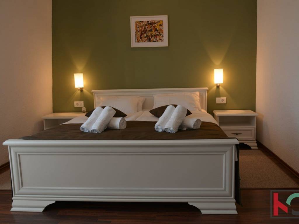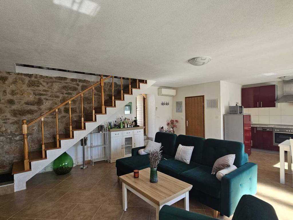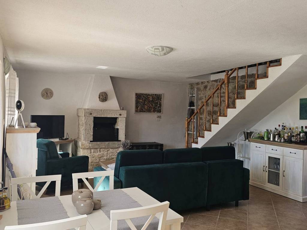 Unutarnje stepenište vodi do spavaćeg dijela. Tu su se smjestile dvije vrlo ugodno uređene spavaće sobe te dodatna kupaonica što omogućava komfor. Regulacija topline osigurana je sa tri zasebne klimatske jedinice. Kuća je potpuno namještena te se kao takva prodaje što omogućava budućim vlasnicima korištenje u minimalnom roku bez dodatnih ulaganja. Parkirno mjesto dostupno je na javnoj površini pored kuće.