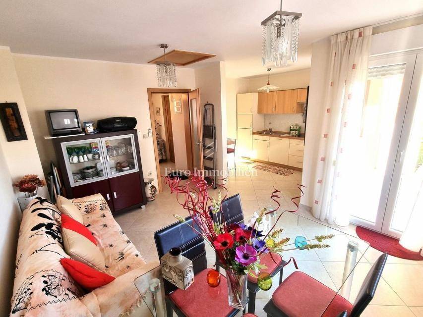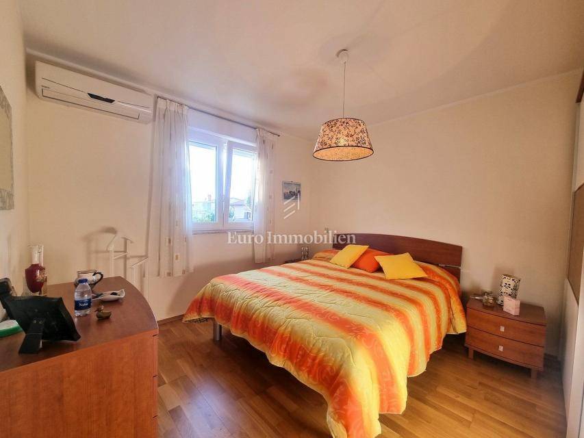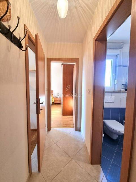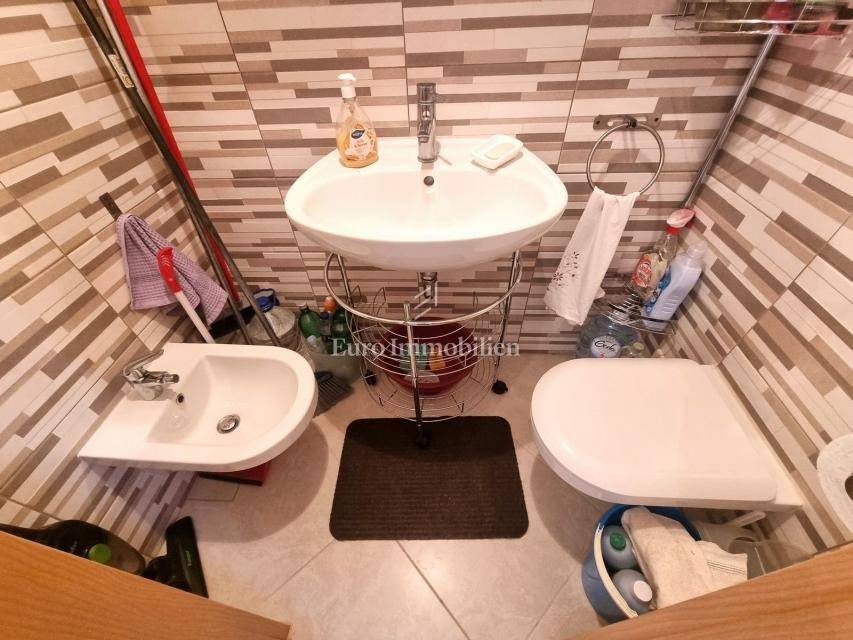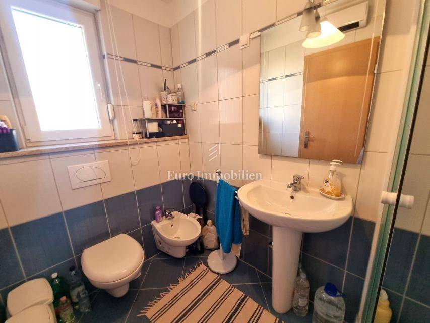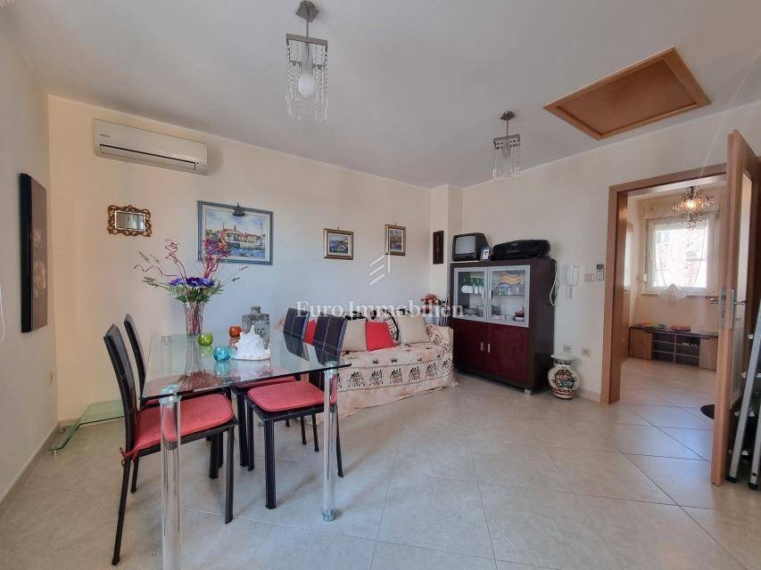 The 58 m2 apartment is located on the 1st floor of a small building of only 5 apartments, close to the sea and the city center. It consists of an entrance hall, toilet, living area (living room, dining room and kitchen) with access to a balcony with a sea view. The sleeping area is completely separated by a hallway and a door, there are two bedrooms (one smaller, the other spacious) and a bathroom with a window. Each room and living room have inverter air conditioning units and there is also a chimney in the living room. There is a storage room of 3.47 m2 in the basement of the building, and the apartment also has one parking space. It is an excellent choice for those who want to be close to the sea and the center, only a 10-minute walk away!