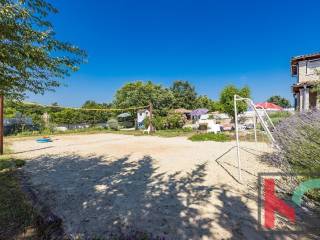 Uređena okućnica površine 1370m2 sastoji se od bazena, sunčališta, odbojkaškog terena na pjesku te dio za druženje sa ljetnom kuhinjom i kaminom te prednja strana kuće gdje se nalazi parking za gotovo 7 vozila.