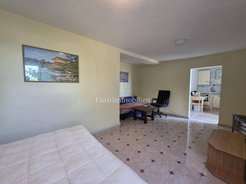 In the basement there is a one-bedroom apartment of 35m2 and additional space, which can be arranged into a studio apartment. In front of the apartment is a garden planted with Mediterranean plants and a covered terrace.