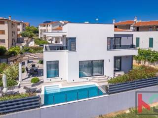 Prodajemo samostojeću vilu s bazenom i panoramskim pogledom na more i Kvarner koja se proteže na dvije etaže te je ukupne površine 130m2 smještena na okućnici od 450m2 i udaljena svega 500m od mora.